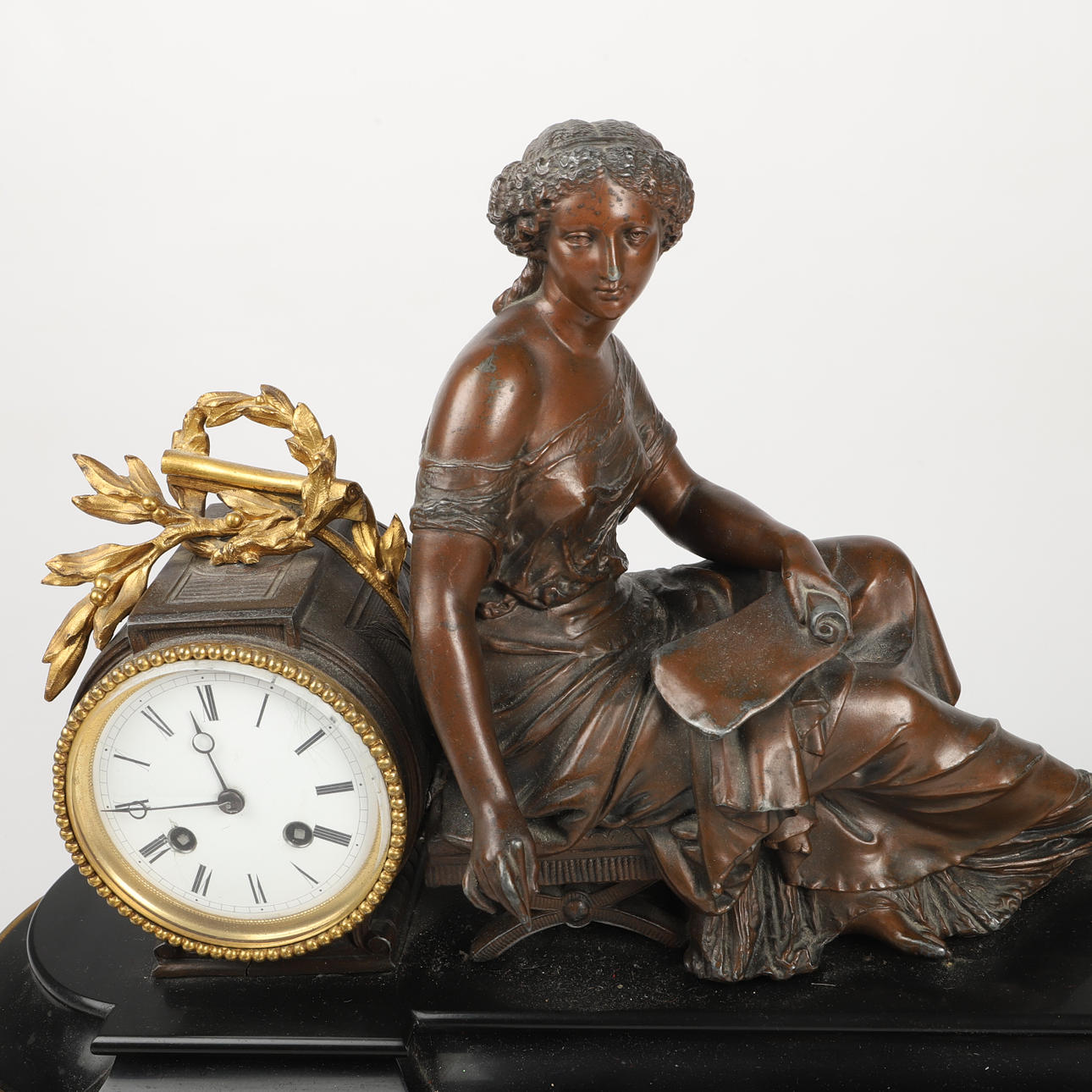 PÉNDULO DE MESA, piedra/bronce, B. Lourd, siglo XIX.