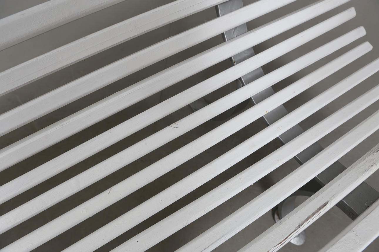 Estructura metálica con listones de madera.