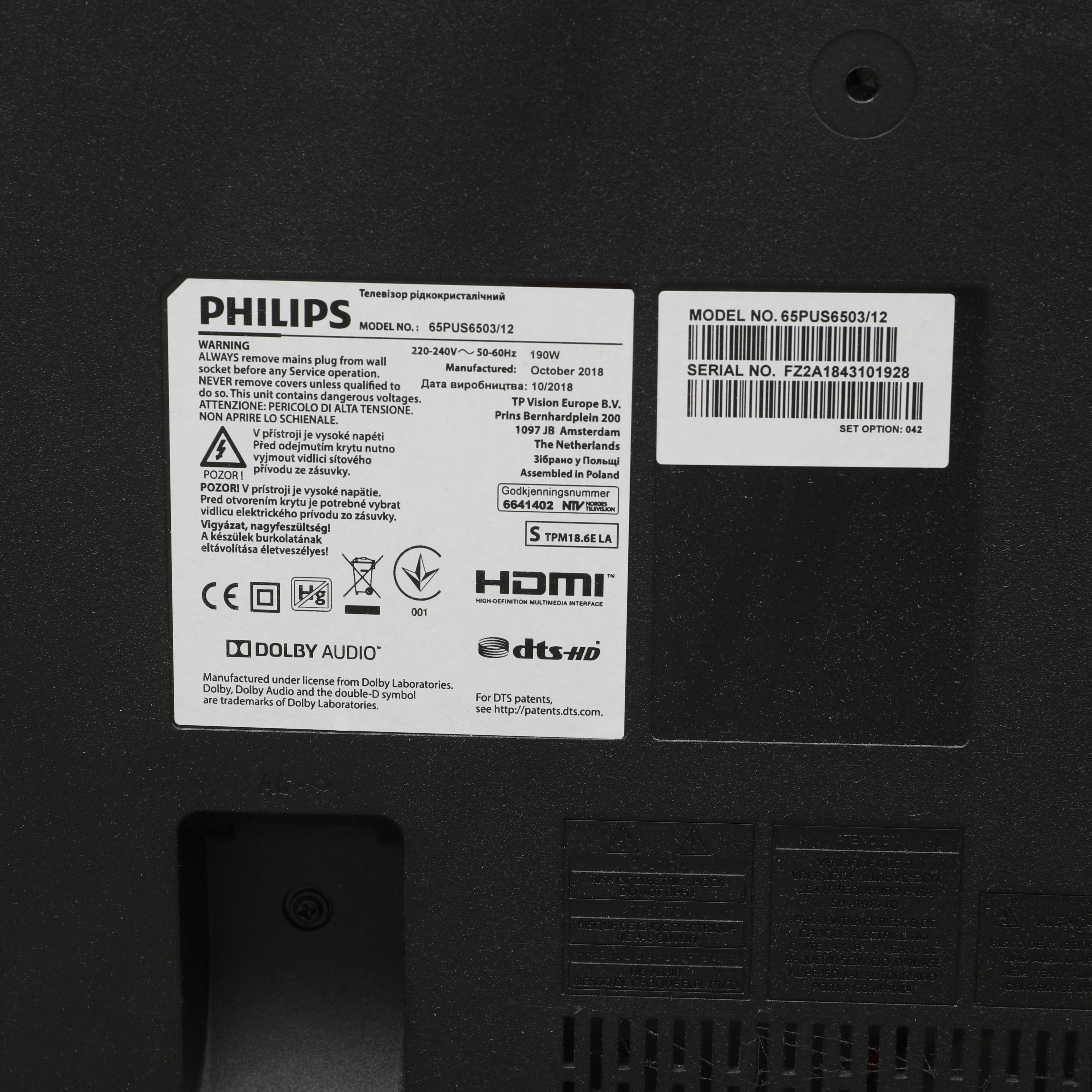 2889813. Televisor, Philips, 65PUS6503/12.