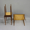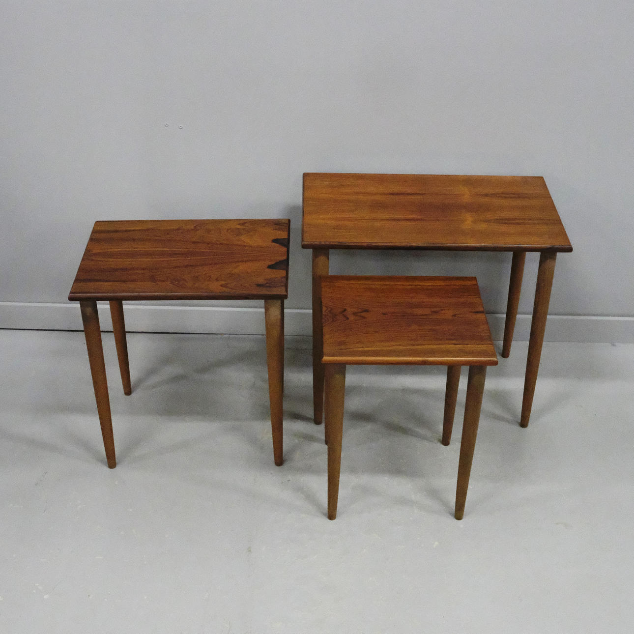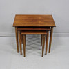 Conjunto de mesa en tres partes, tapa de palisandro, patas de madera teñida.