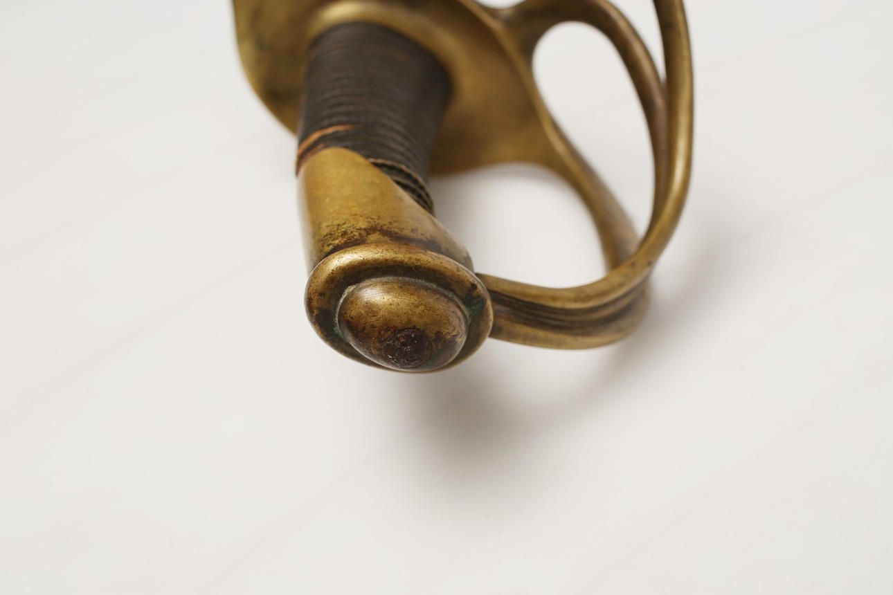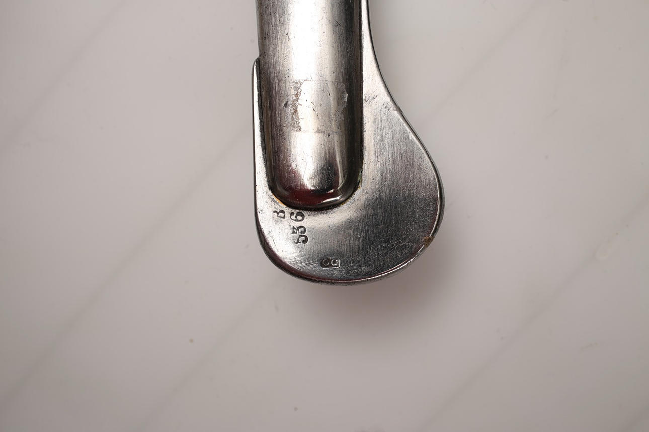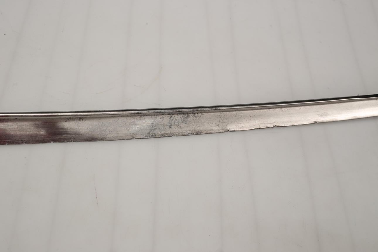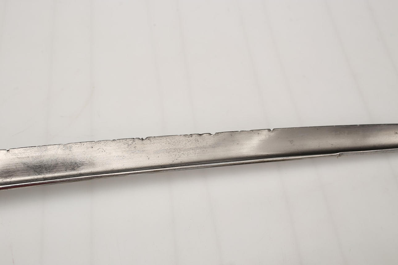 Usado, falta cable en la empuñadura. Marcas de corte en la hoja.