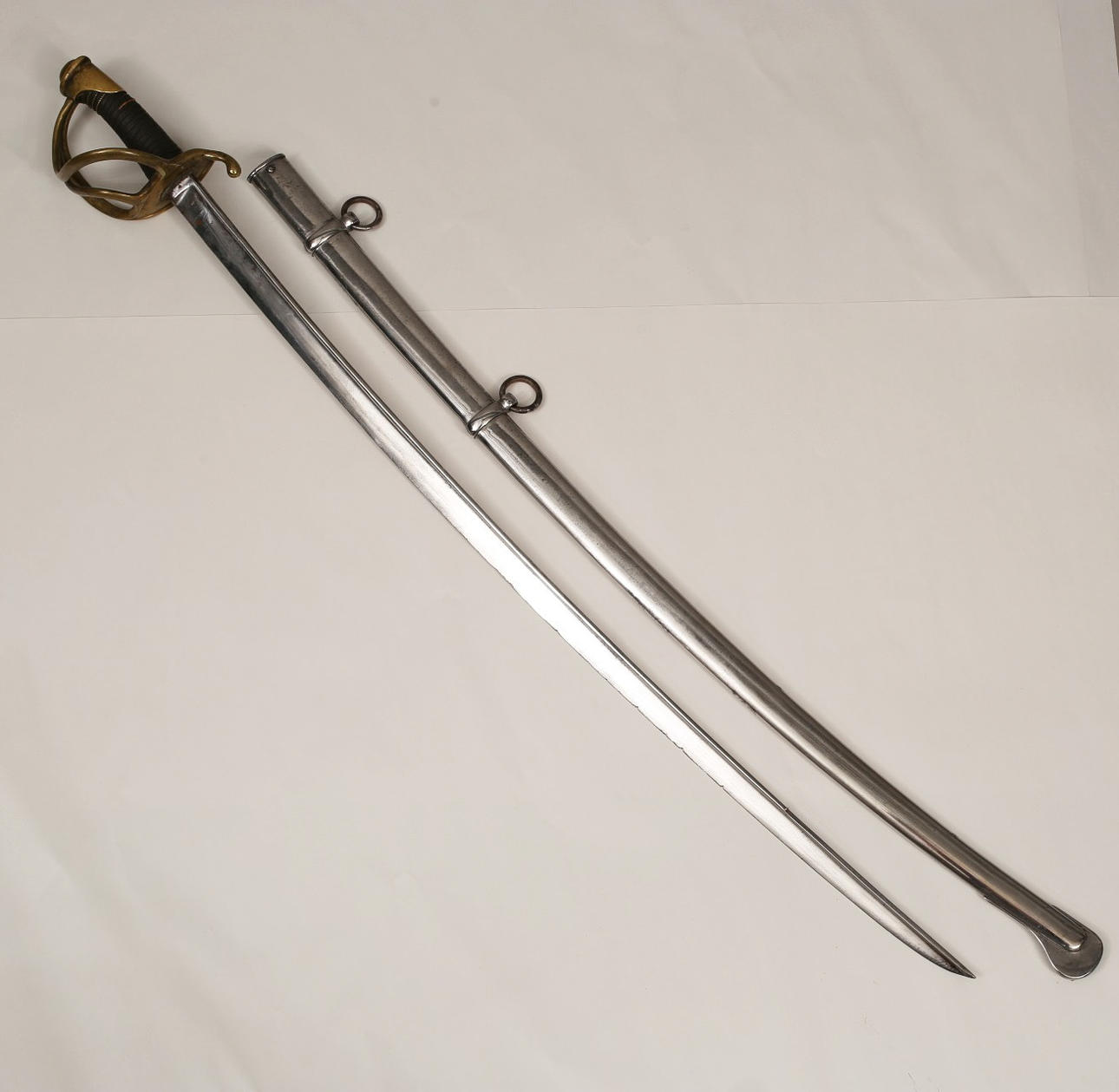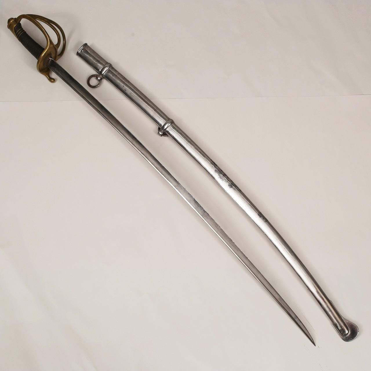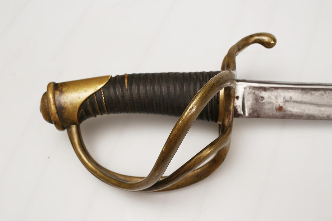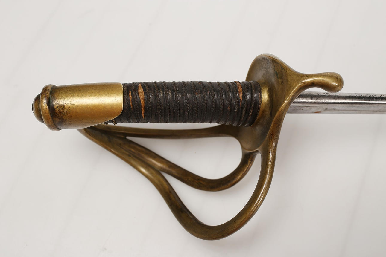 Usado, falta cable en la empuñadura. Marcas de corte en la hoja.