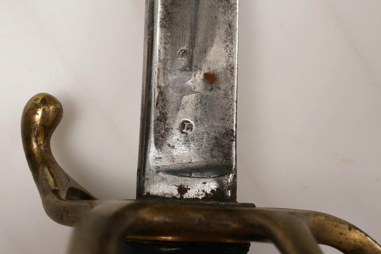 La parte posterior de la hoja dice: Klingenthal 1820, la vaina tiene el número 1027 Longitud con vaina. 110CM.