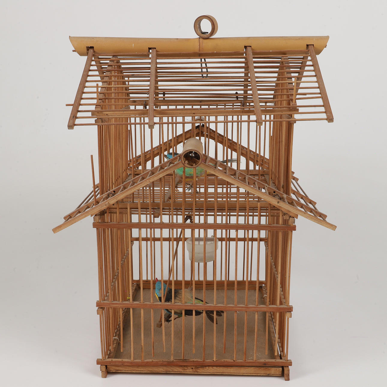 Con dos pájaros en tela Largo 30, ancho 24, alto 43,5 cm.