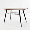 Sobre de perstorps, repisa para periódicos, patas ennegrecidas, detalles en latón. Alto 56 cm Largo 91 cm Ancho 62 cm.