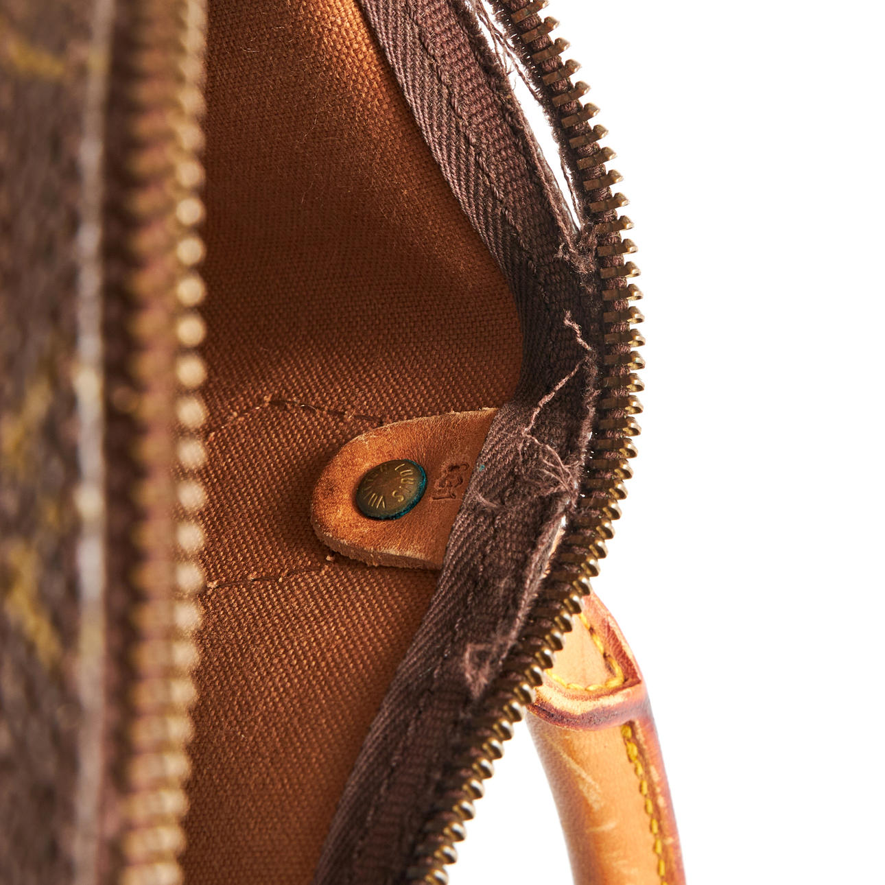 Loneta Monogram con detalles en piel y metal dorado. Interior de lona marrón. LOUIS VUITTON PARIS fabricado en Francia, en el interior marcado SA 831. Ancho aproximado 35 cm. Profundidad aproximada de 18 cm.