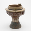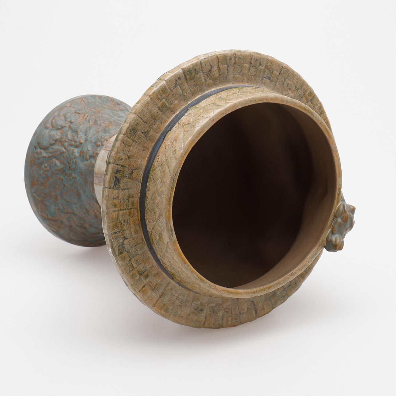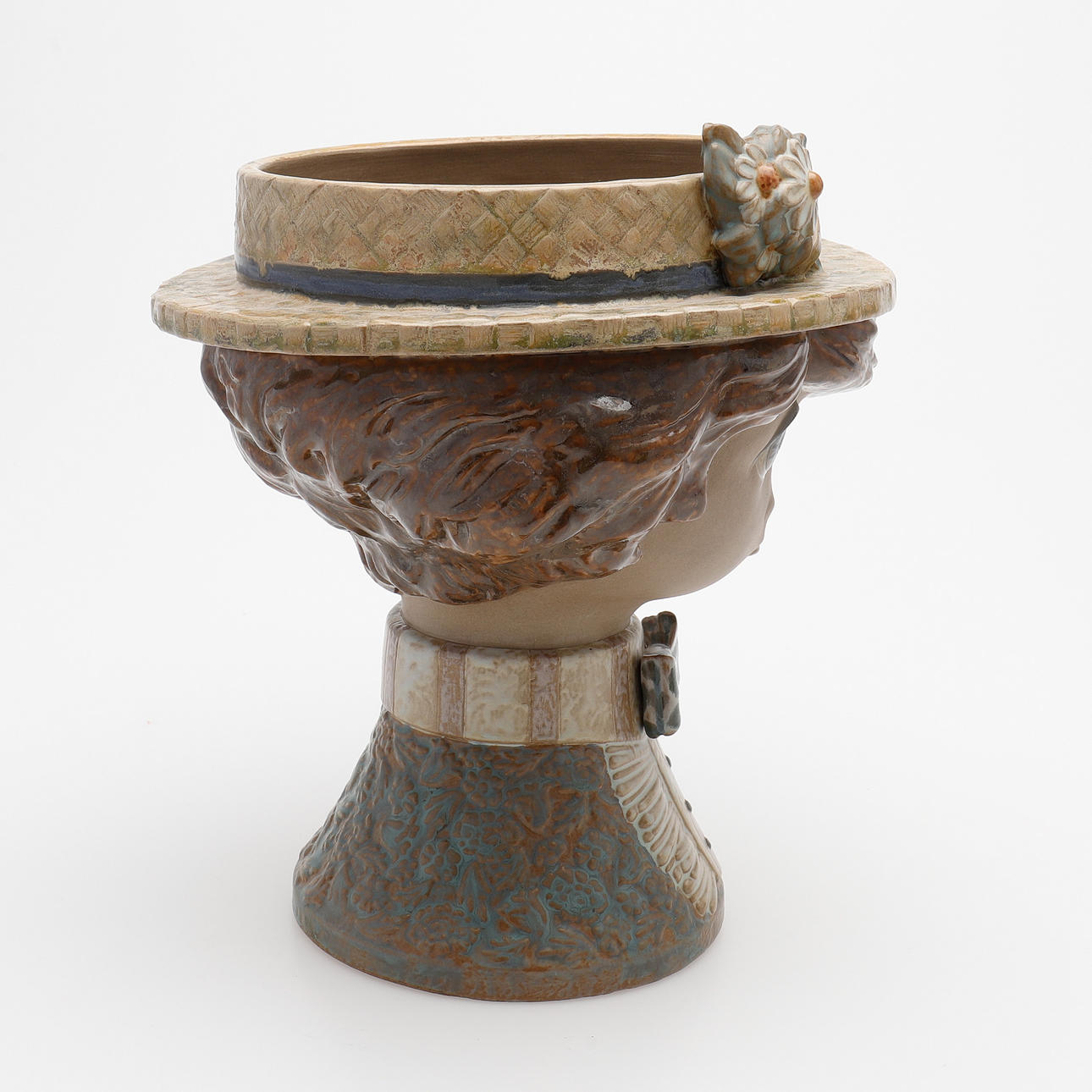 En forma de cabeza de niño, gres parcialmente esmaltado, altura 28 cm.