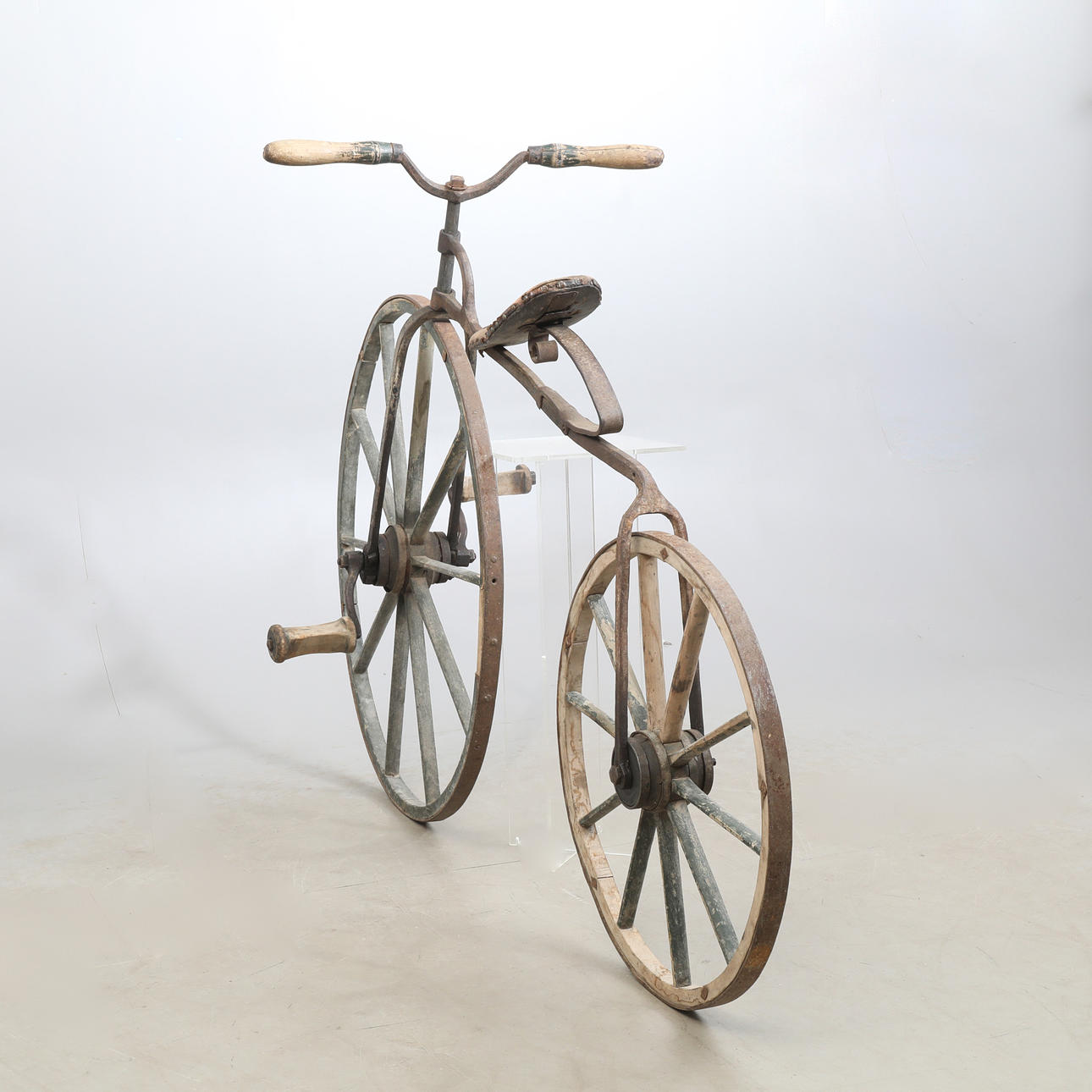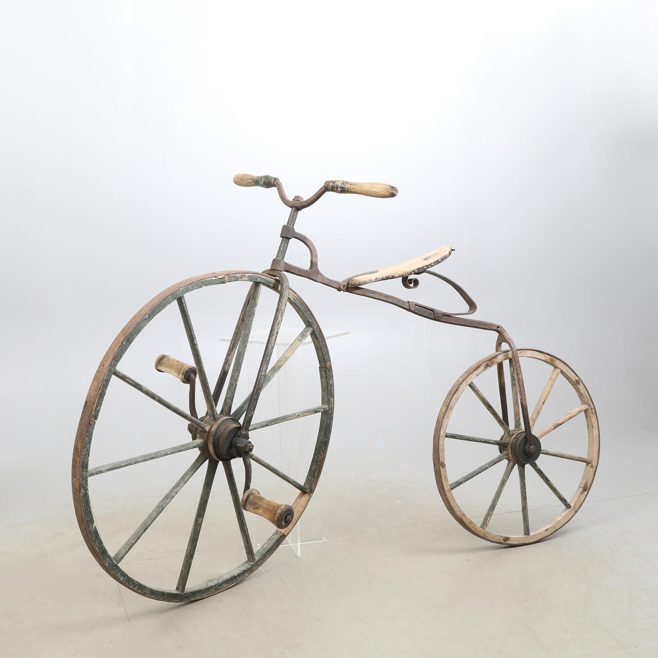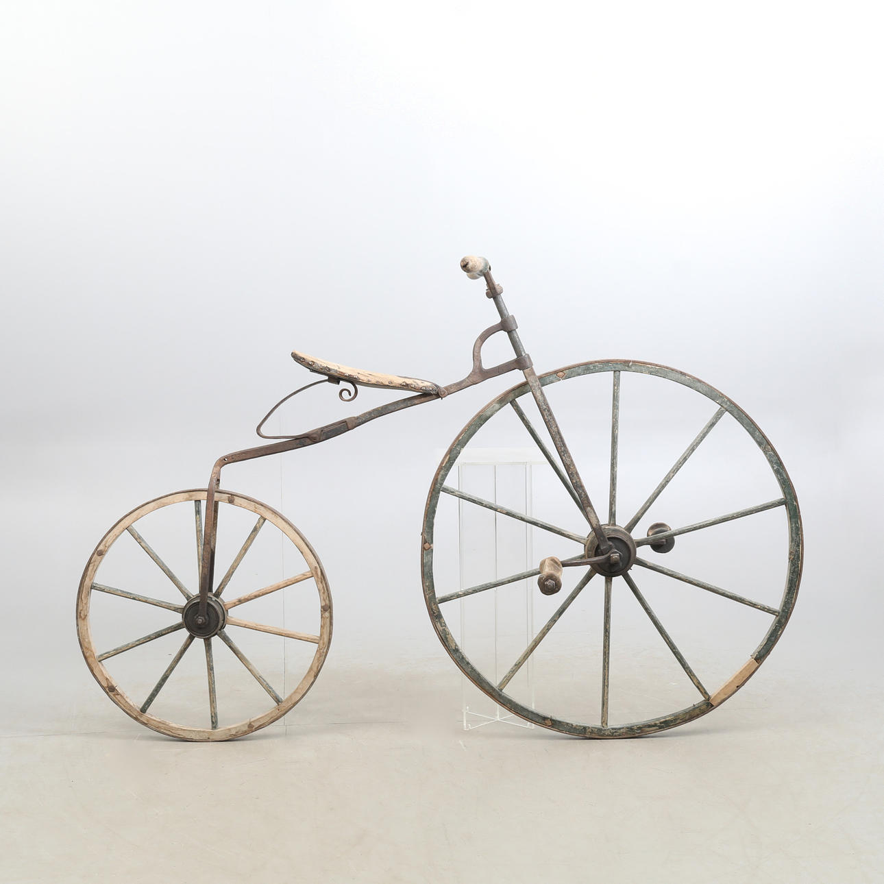 Un velocípedo. Predecesor del vehículo de ruedas altas.