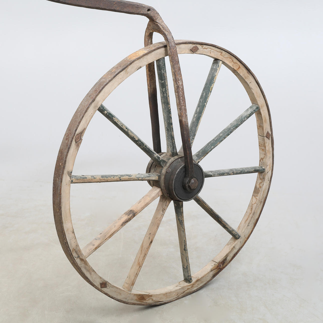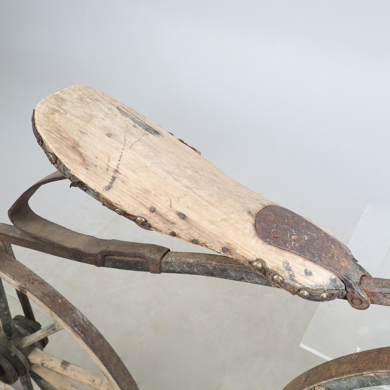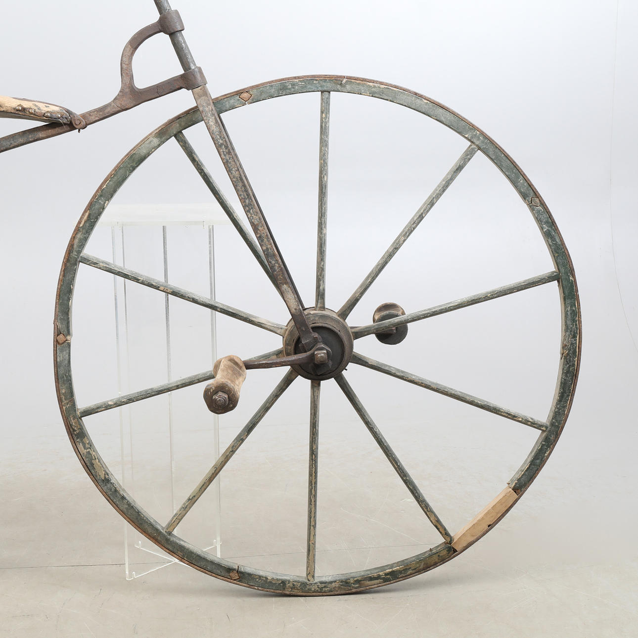Un velocípedo. Predecesor del vehículo de ruedas altas.