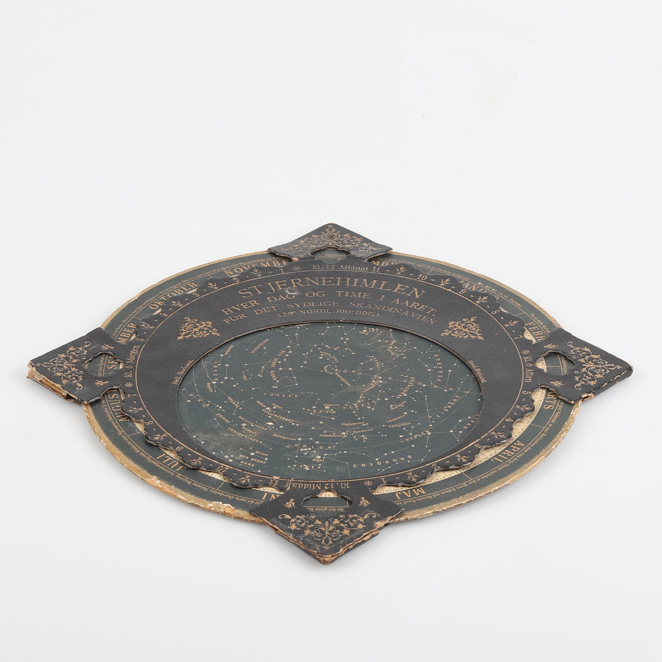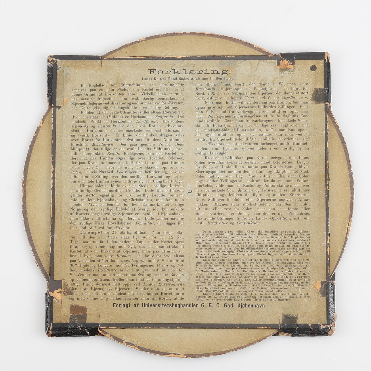 El cielo estrellado todos los días y horas del año. Publicado por la librería universitaria GEC Gad, Copenhague Mapa de estrellas giratorio en marco con decoración en relieve y parcialmente dorada.