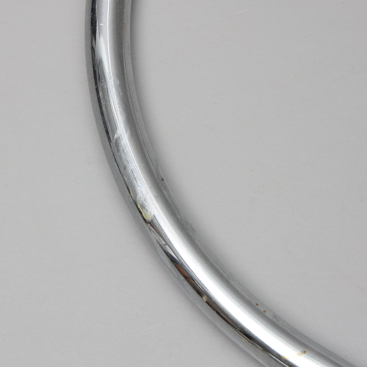 Mesa, cromo y cristal, Alto 70 cm aprox. Diámetro aproximado 40 cm.