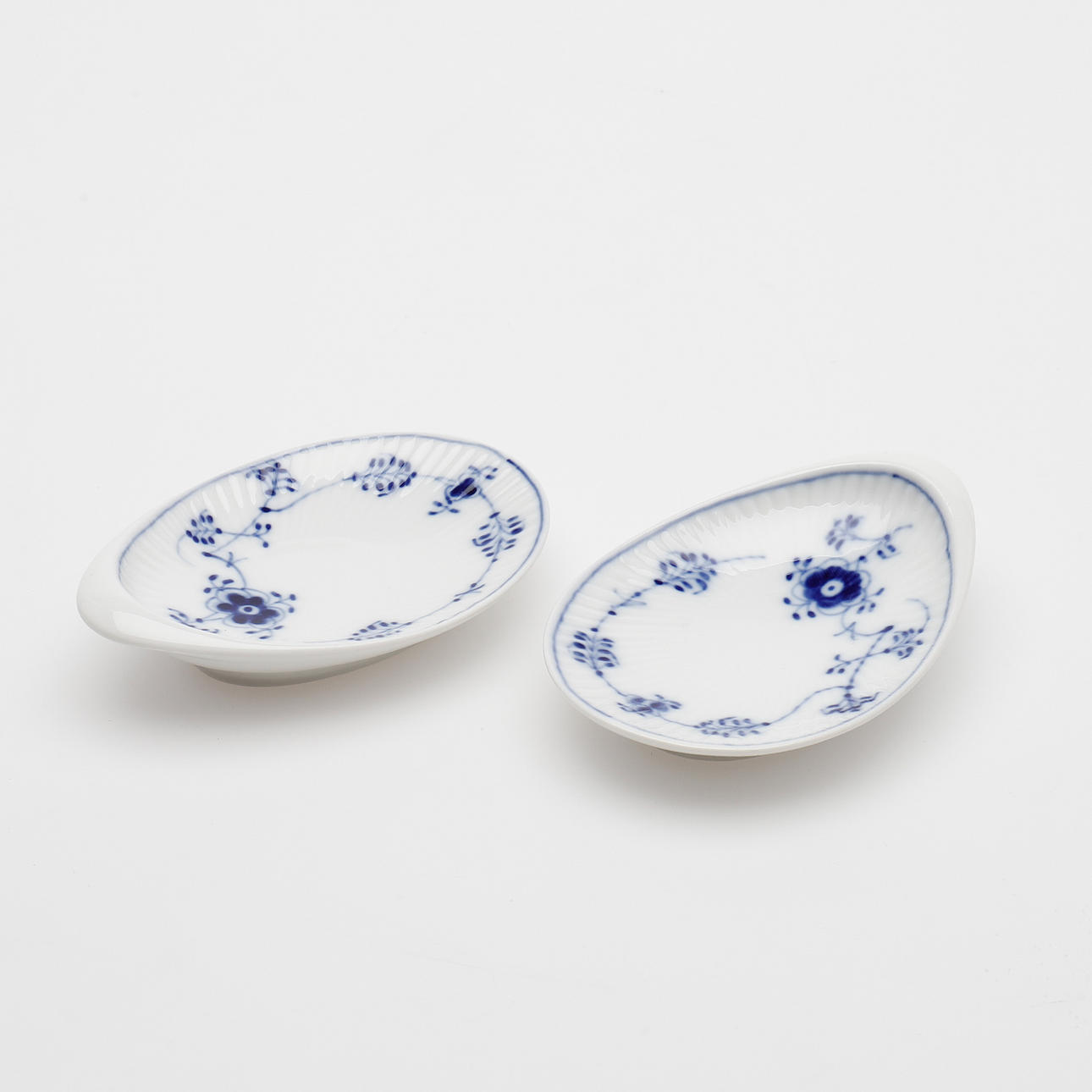 Royal Copenhagen: 2 conchas de mantequilla, No. 2184; 1 salero, No. 712; 1 crema; 1 placa, No. 178; 1 bandeja, nº 269 y Bing & Gröndahl, 1 azucarero con tapa, nº 593.