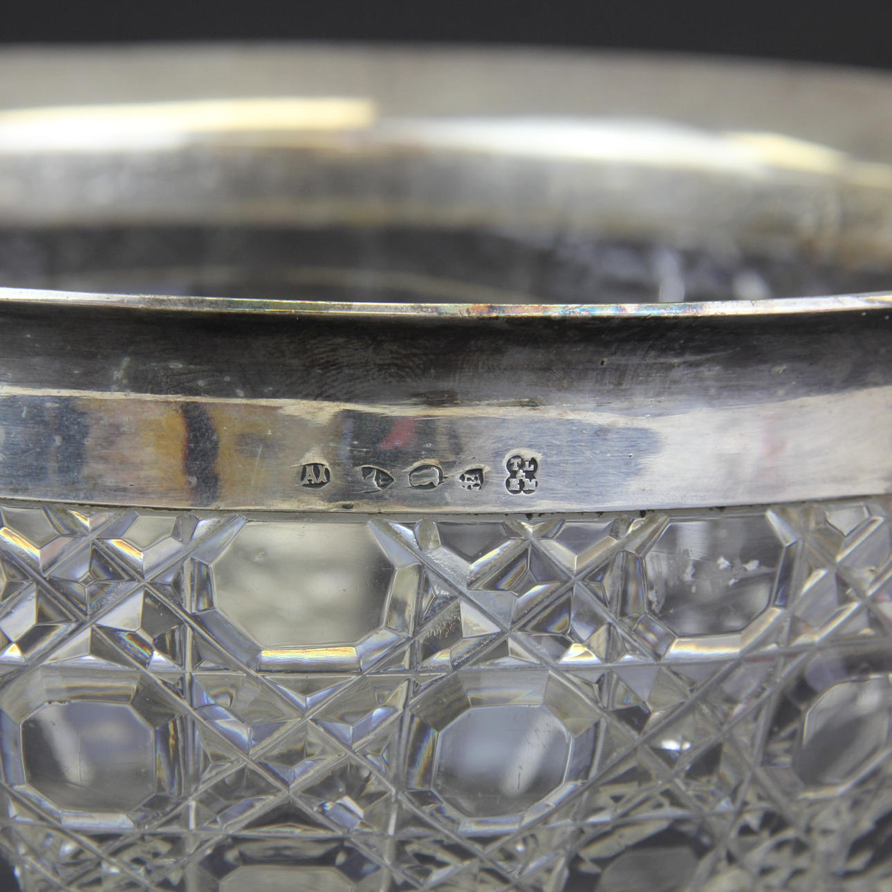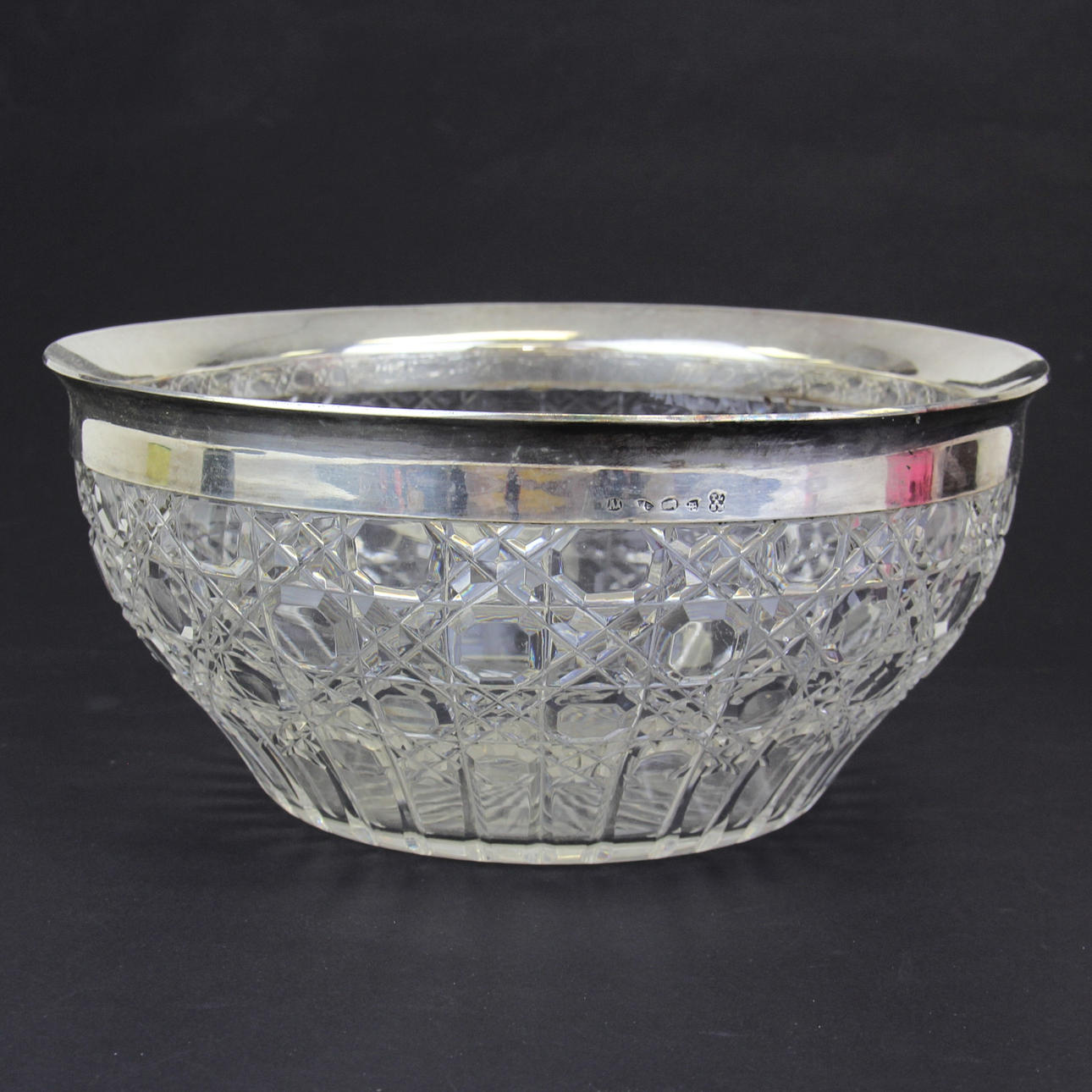 Un plato de plata de Thomas Latham y Ernest Horton de finales del siglo XIX y un frutero de cristal tallado, Dia. 22,6 cm.