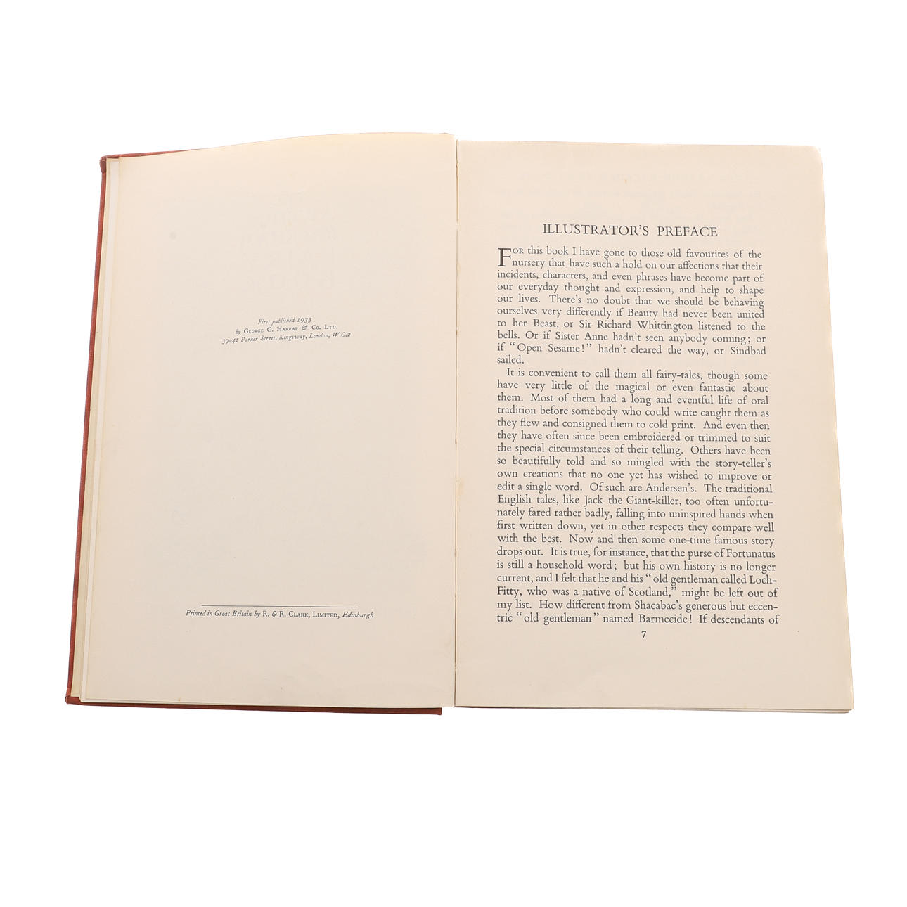 Primera edición comercial, tela pictórica roja con ilustraciones doradas en relieve de un búho, un gato y una bruja, lomo con letras negras, con un frontispicio ilustrado, George G. Harrap & co, Londres, 1933 La propiedad de una herencia fallecida, vendida por orden de albaceas.