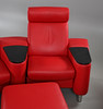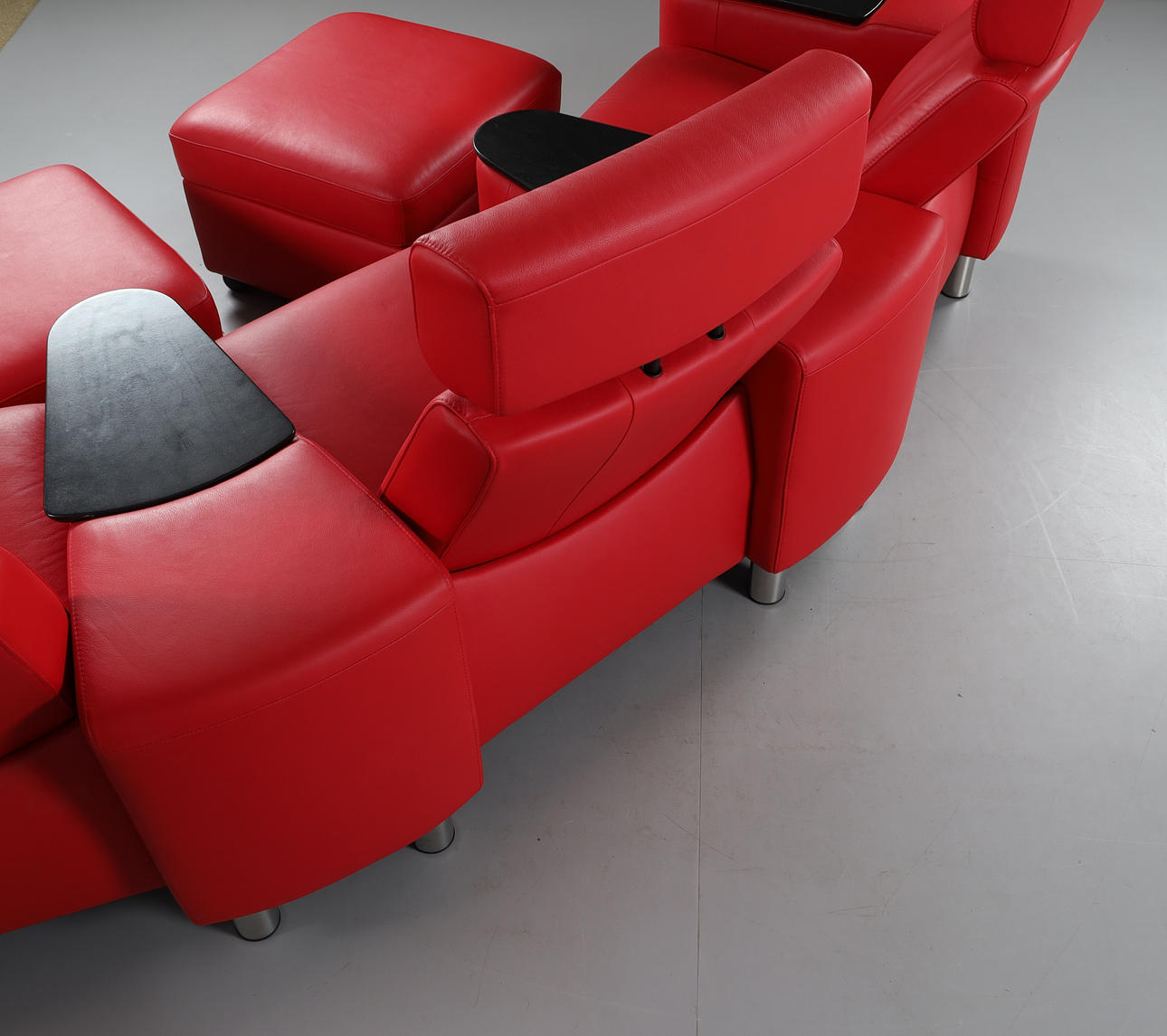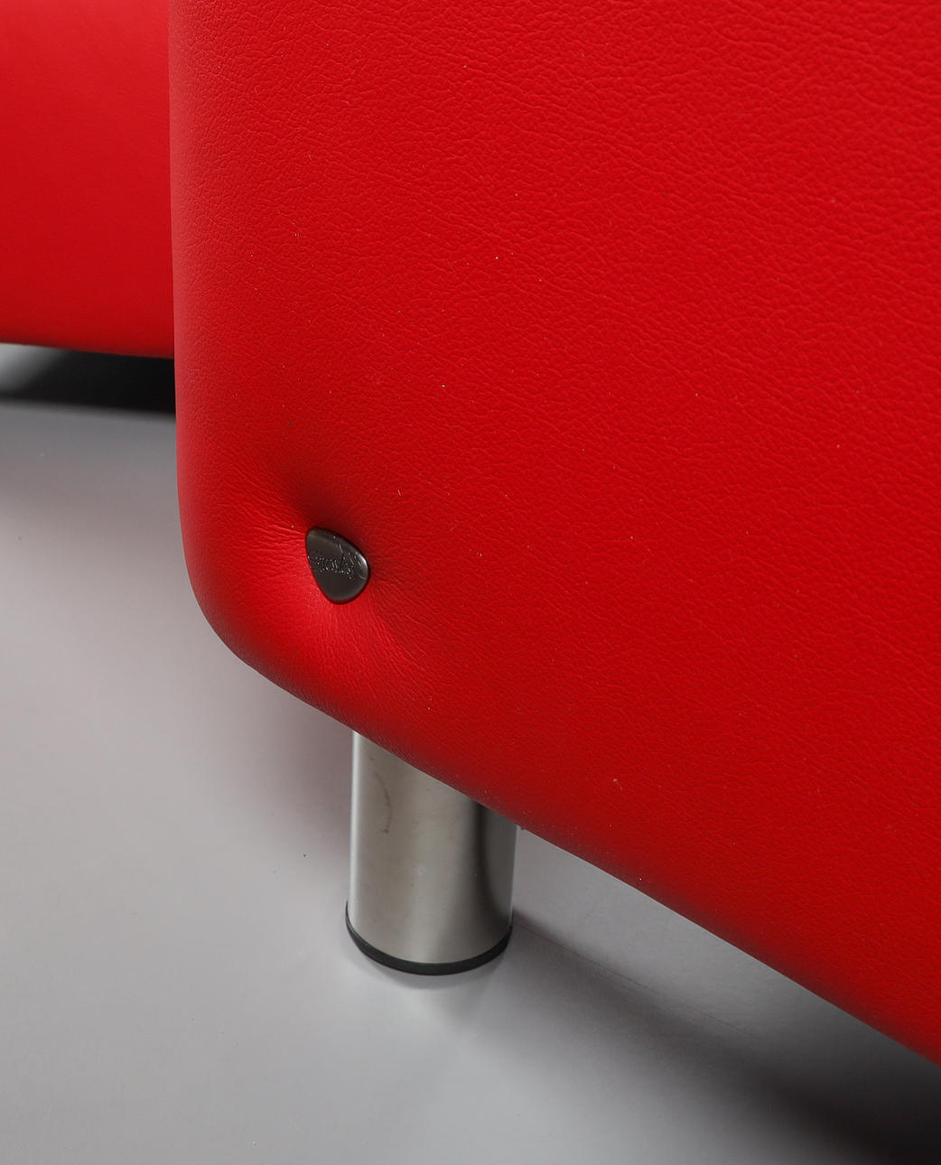 Cuero rojo, almohada para el cuello ajustable, marcado, modelo curvo, longitud aproximada de 300 cm, altura del asiento 46 cm.