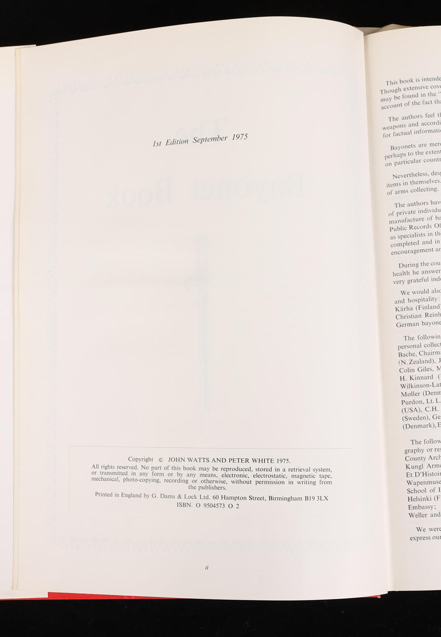John Watts y Peter White, The Bayonet Book, autoeditado, Birmingham, 1975 Bengt Lissmark, Swedish bayonets 1696-1965, autoeditado nueva edición numerada.