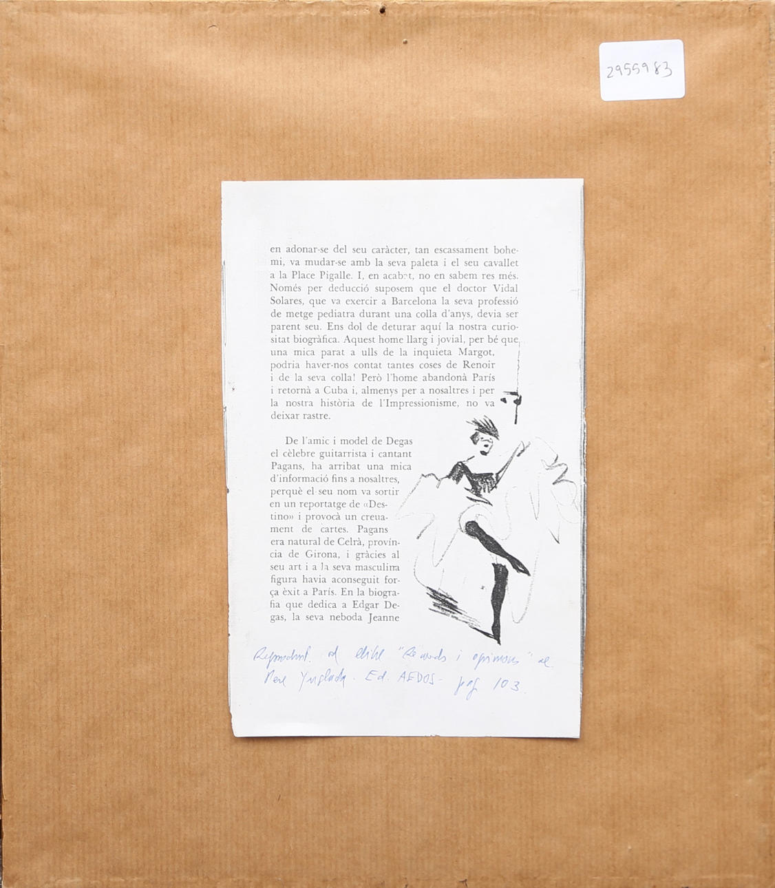 Bibliografía: Pere Ynglada, "Records i opinions", Barcelona, Ed. Aedos, 1959, p. 103 (reproducido).