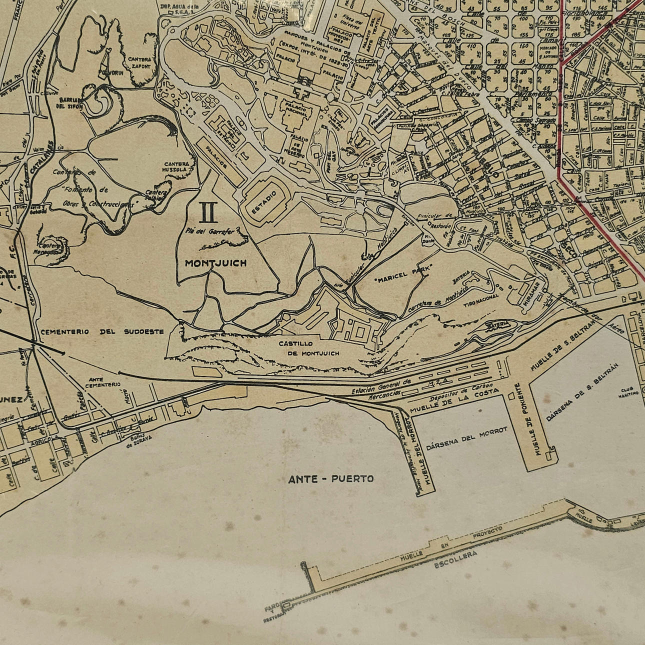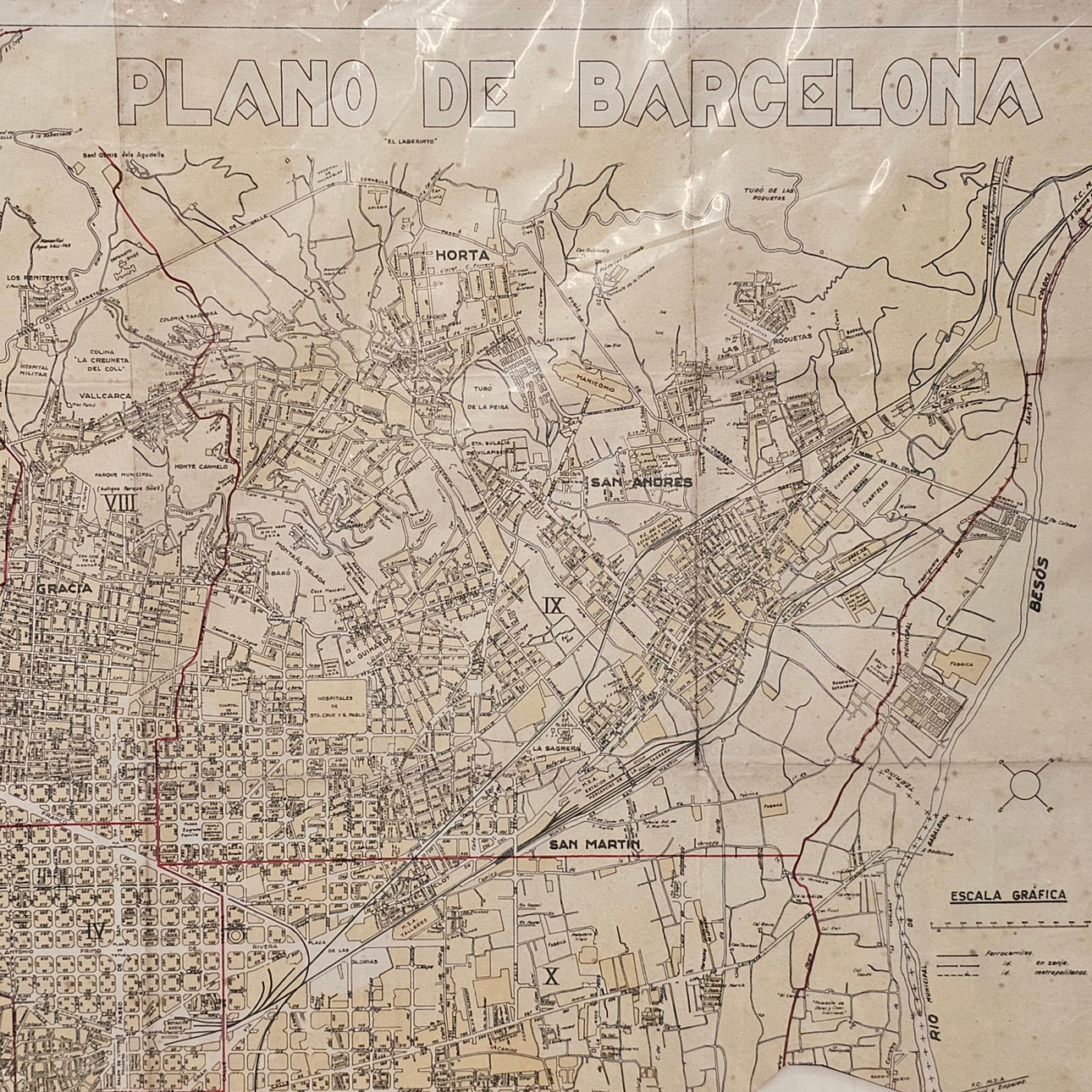ANTIGUO PLANO DE BARCELONA SOBRE PAPEL.