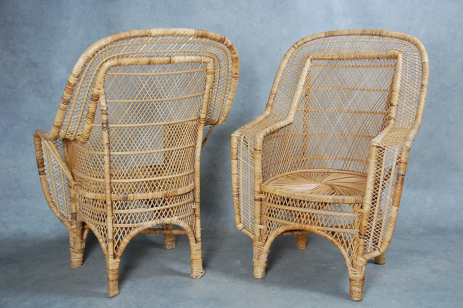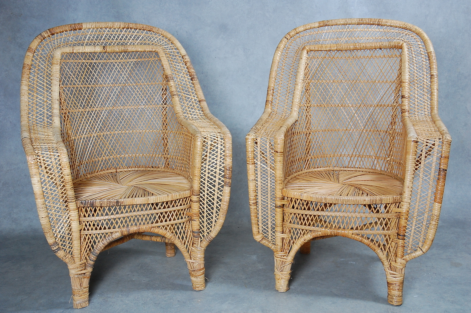 296388. SILLAS DE MIMBRE, 1 par, estilo colonial, 1900.