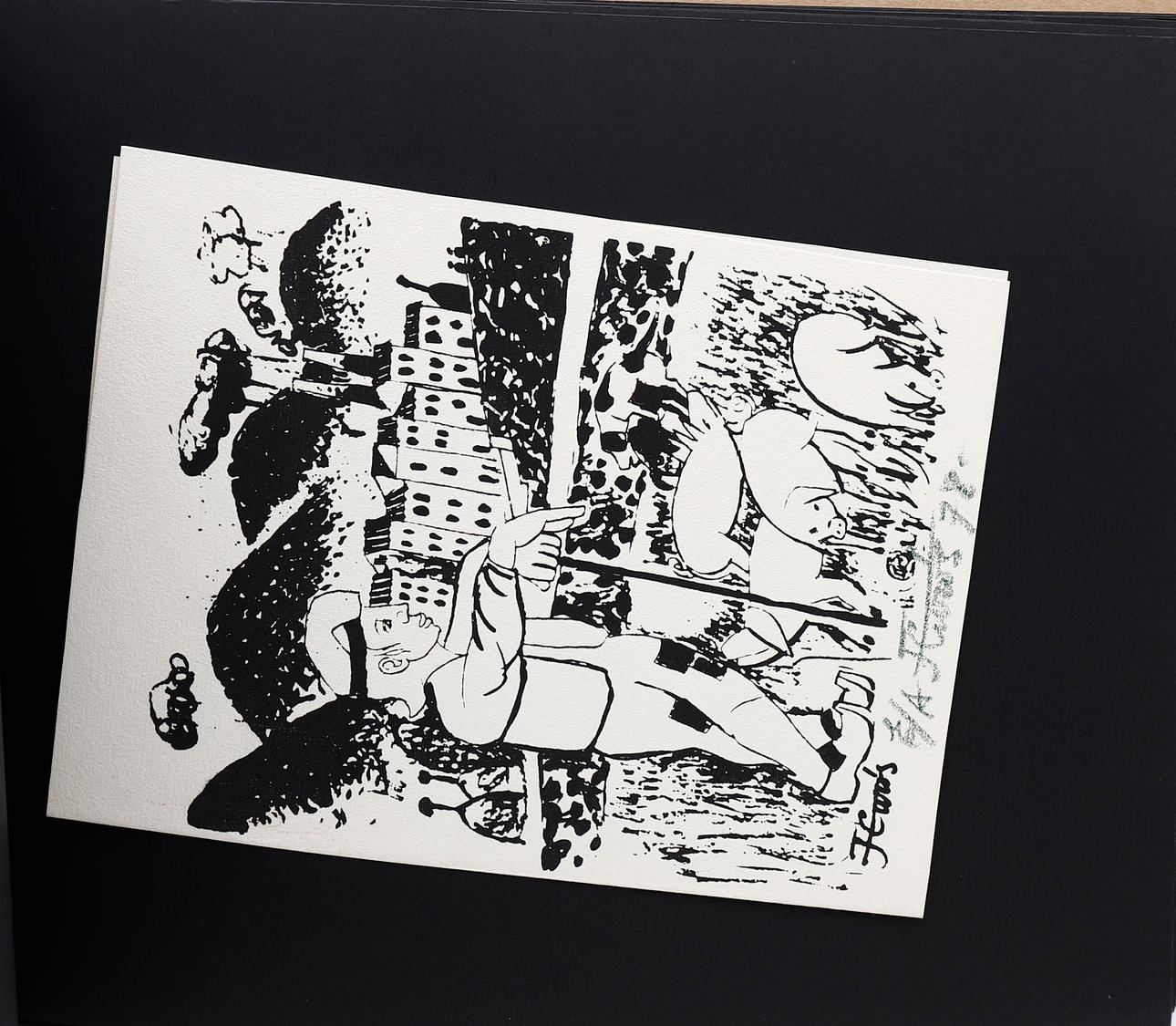 Álbum con cincuenta dibujos, esbozos, grabados y dedicatorias de diversos artistas como Frederic Lloveras, Antoni Vives Fierro, Rafael Griera, Simó Busom, Albert Blay, José Luis Florit o Francesc Sans Castaño