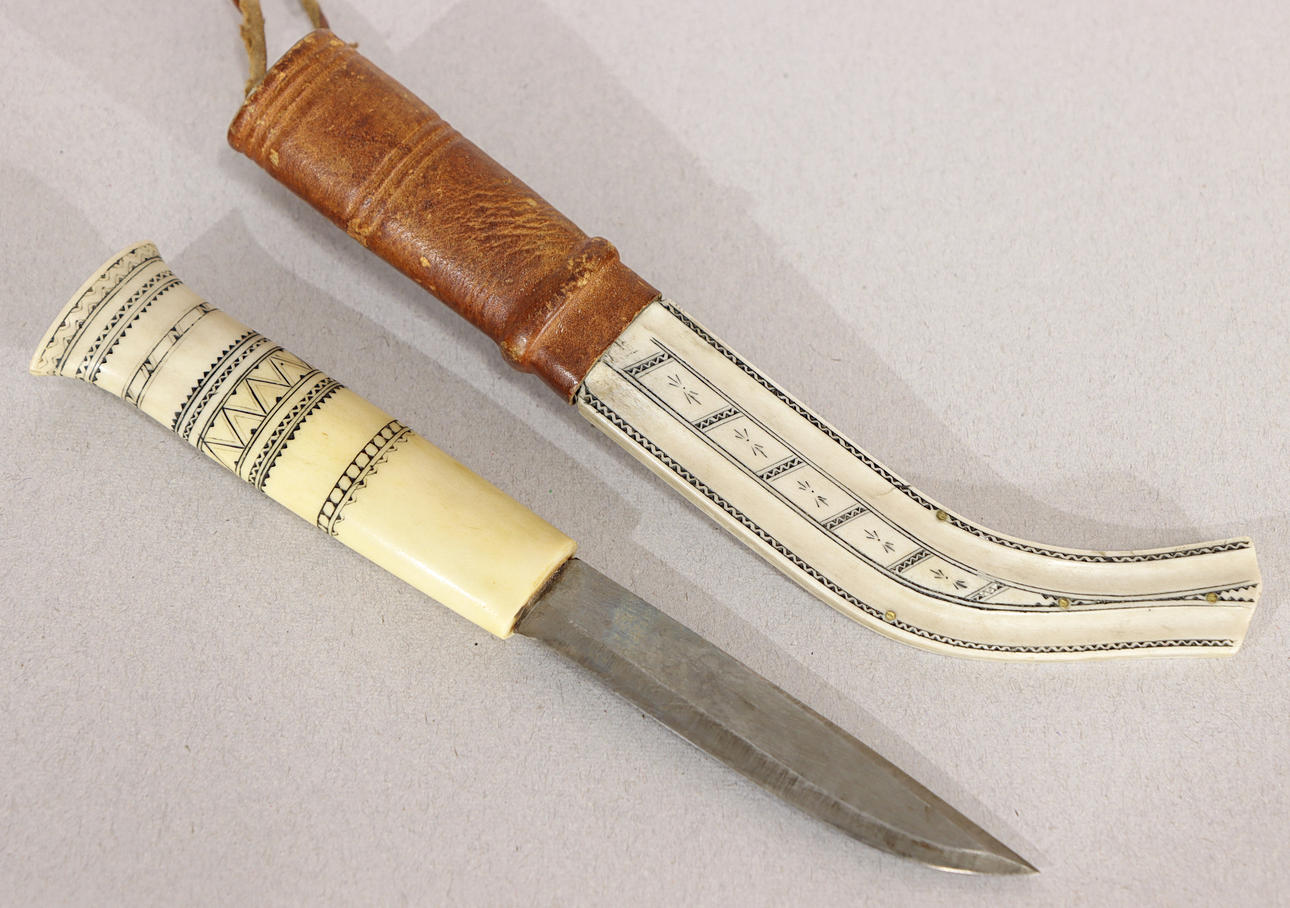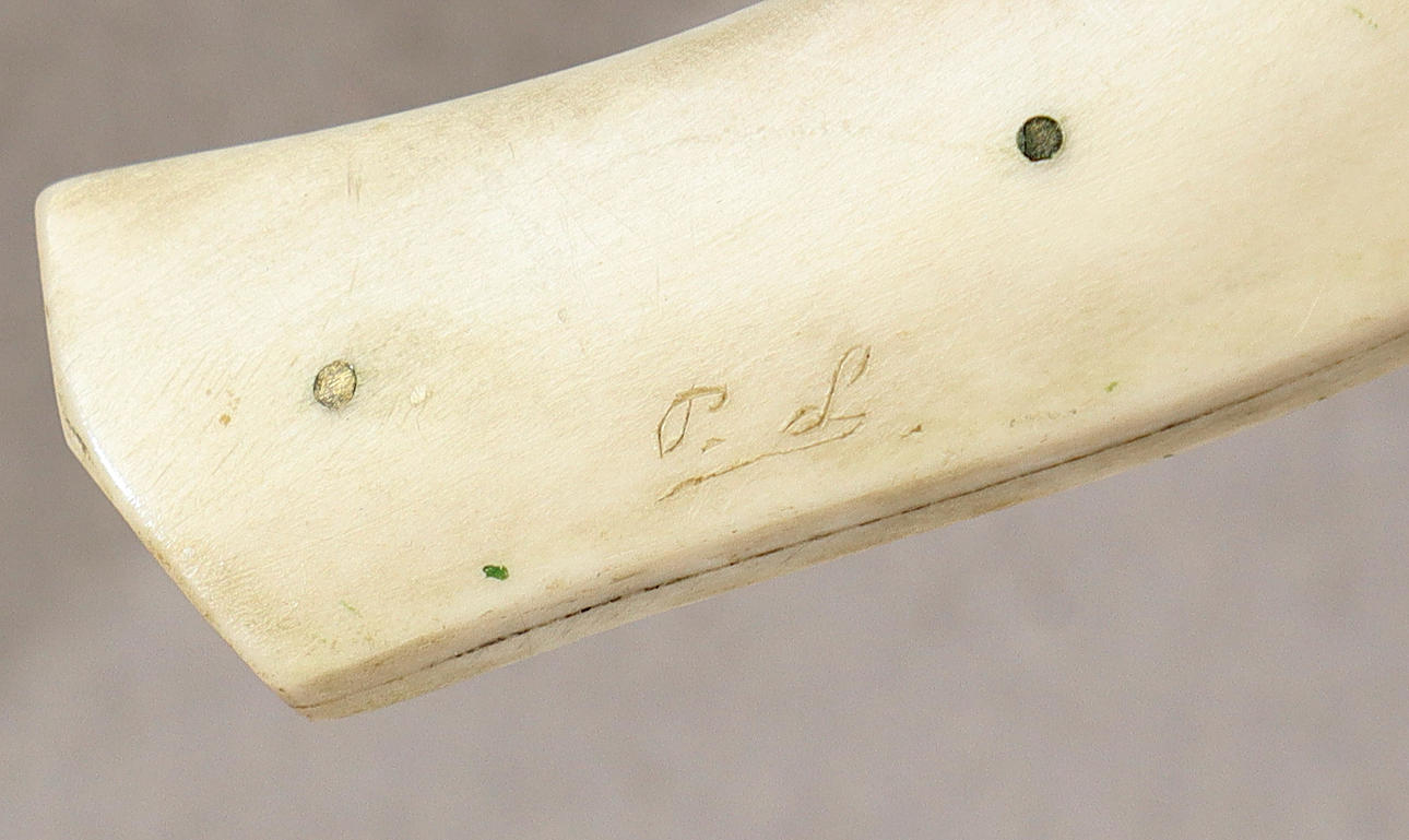 Longitud total del cuchillo aproximadamente 19,56 cm, longitud de la hoja aproximadamente 9,5 cm. Vaina firmada PL.