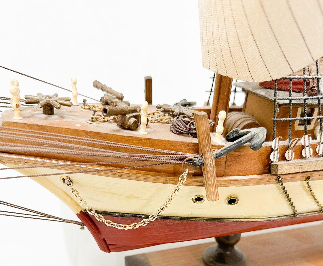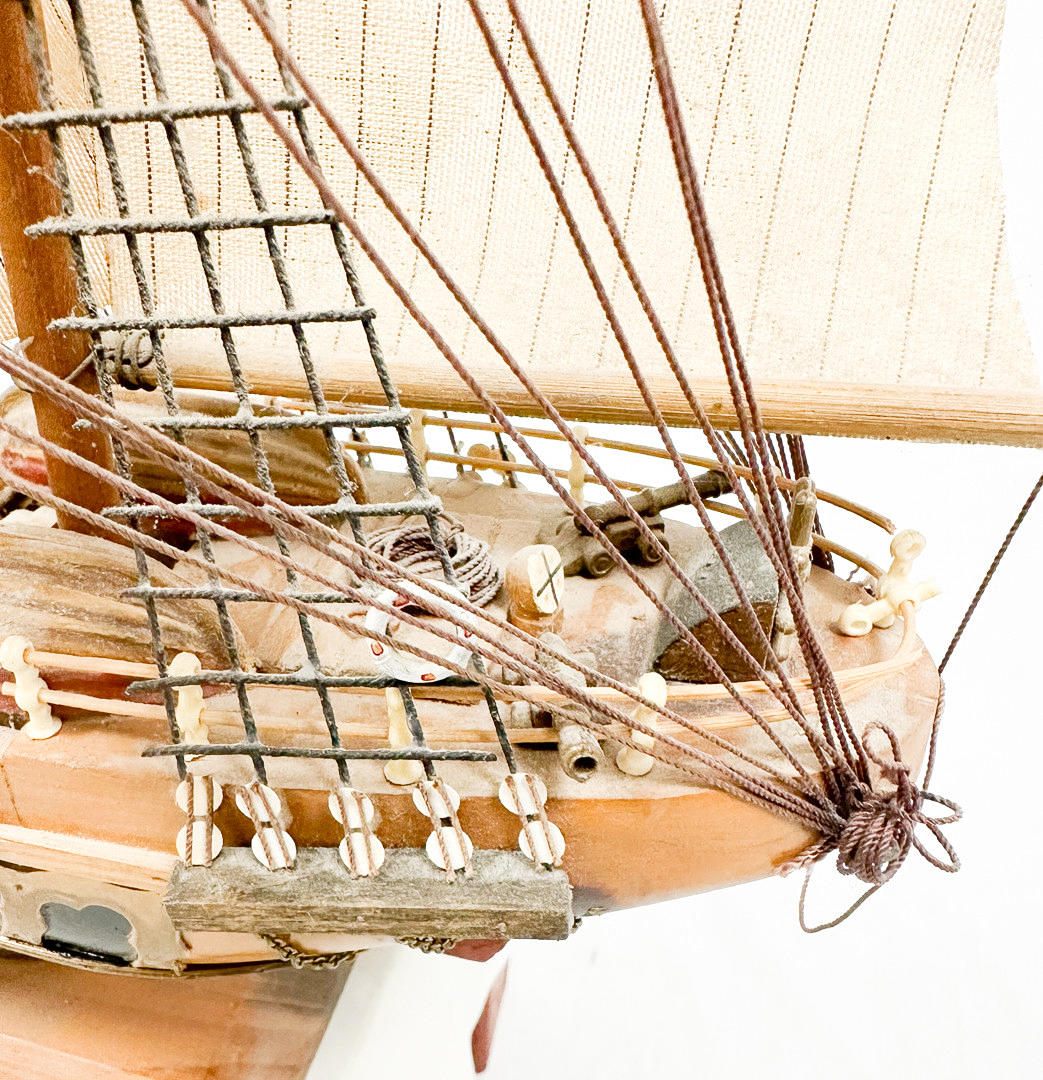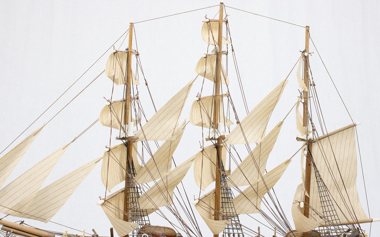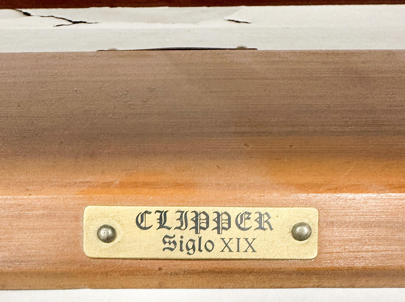 Placa marcada. Trimástil con casco de madera.