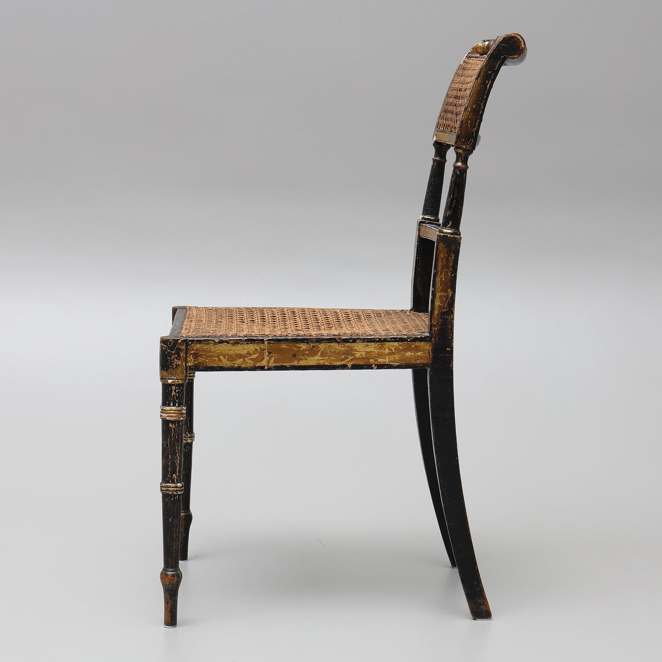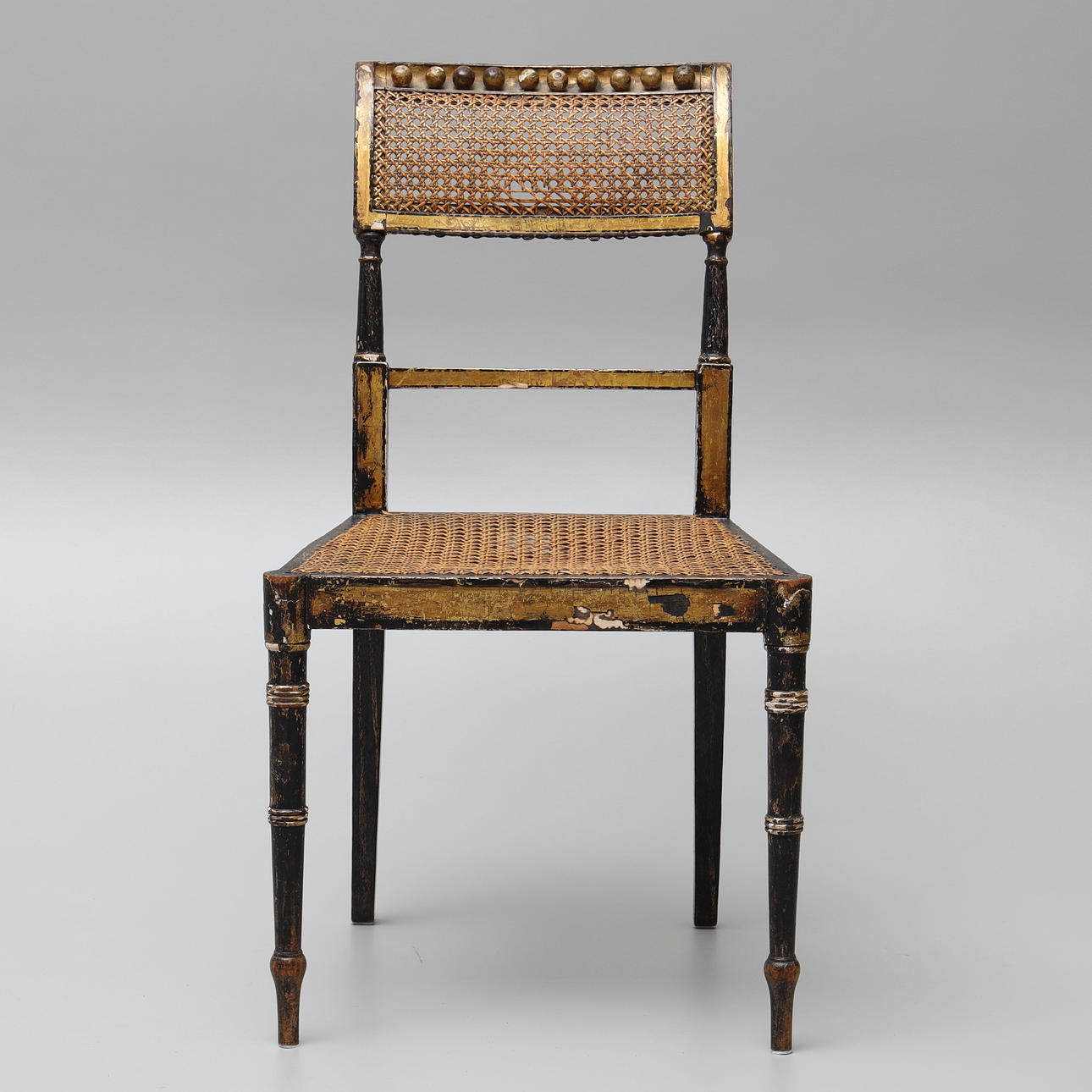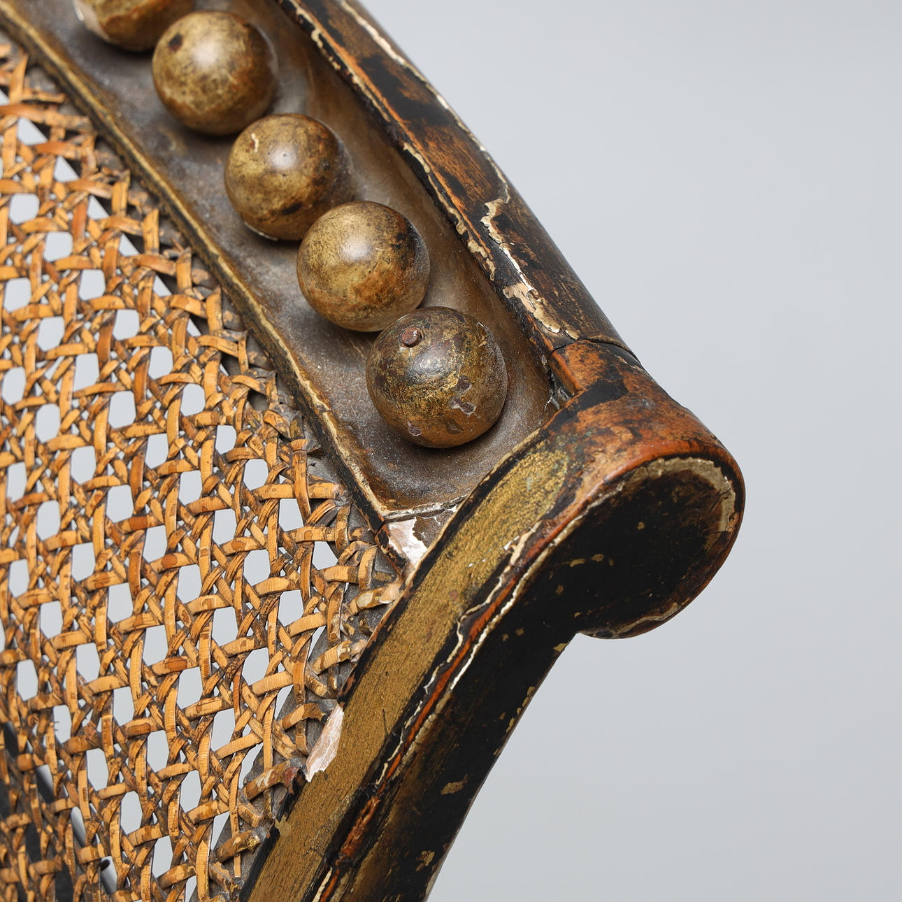 Silla pintada en madera y rattan, altura 85 cms.