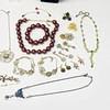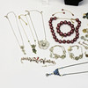 7 collares, largo aproximado 45-52cm. 3 anillos, tamaño 17-19 mm. 4 pulseras, largo 21cm. 6 pares de aretes.