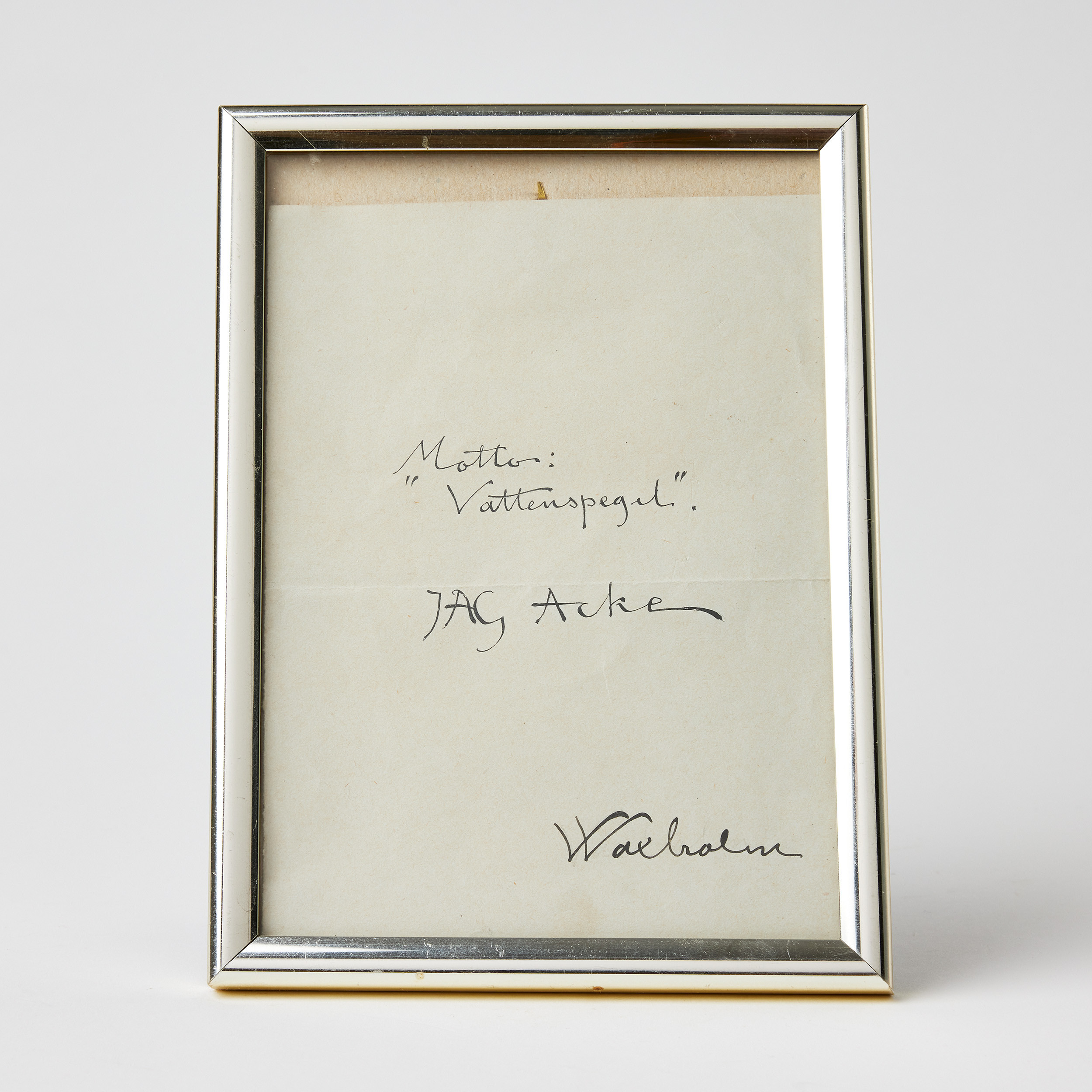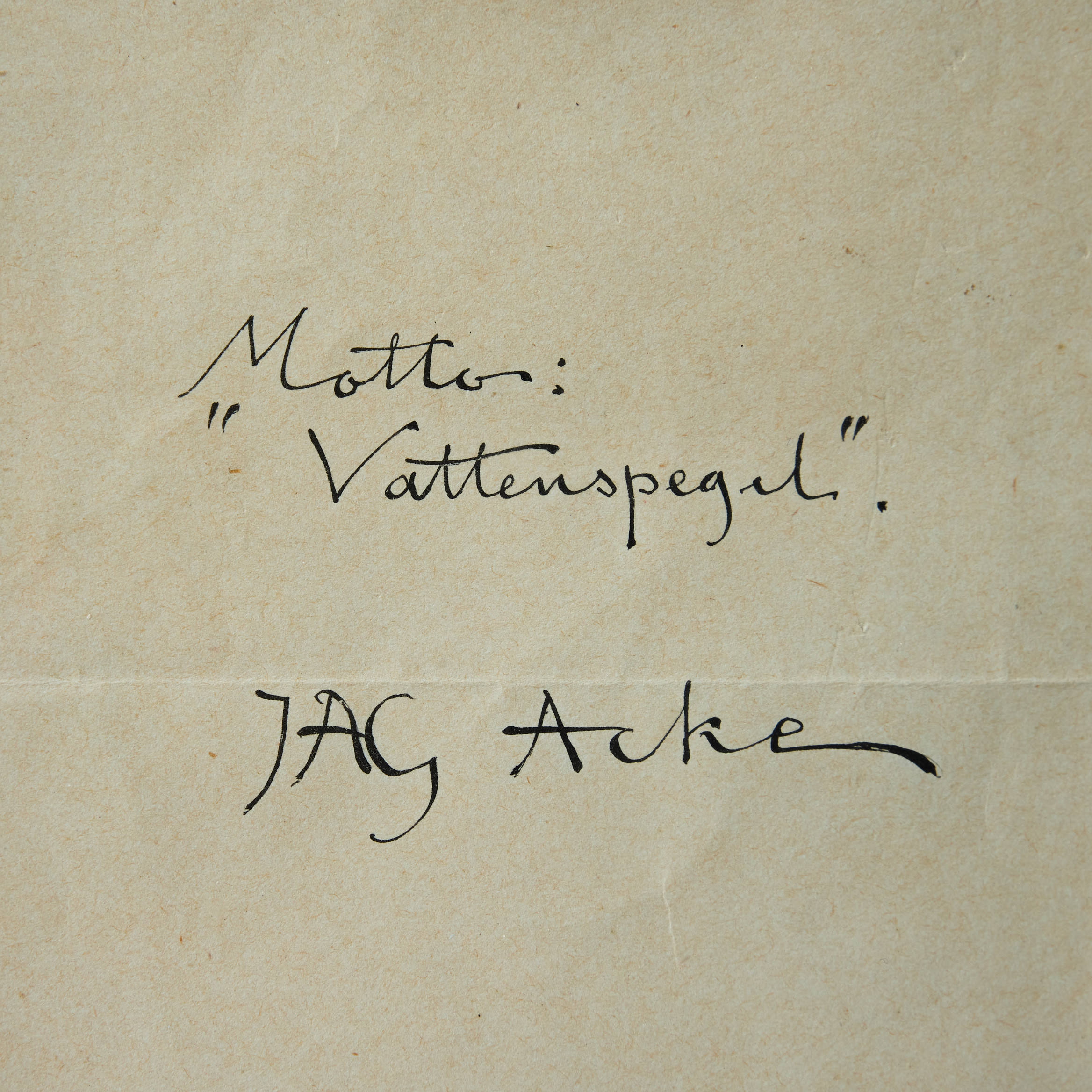 1. 2977769. J.A.G. (JOHAN AXEL GUSTAF) ACKE. El lema de JAG Acke "Espejo de agua".