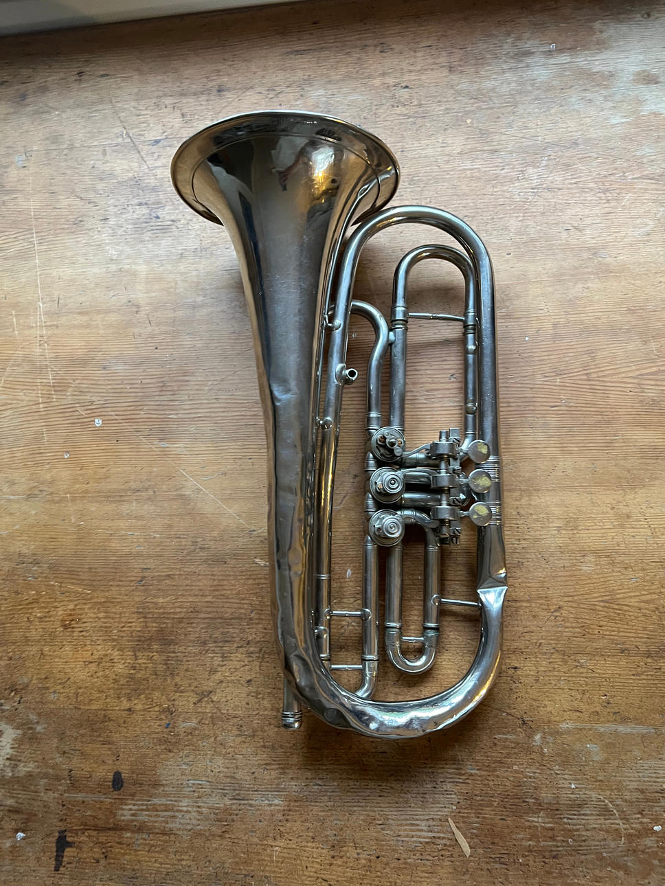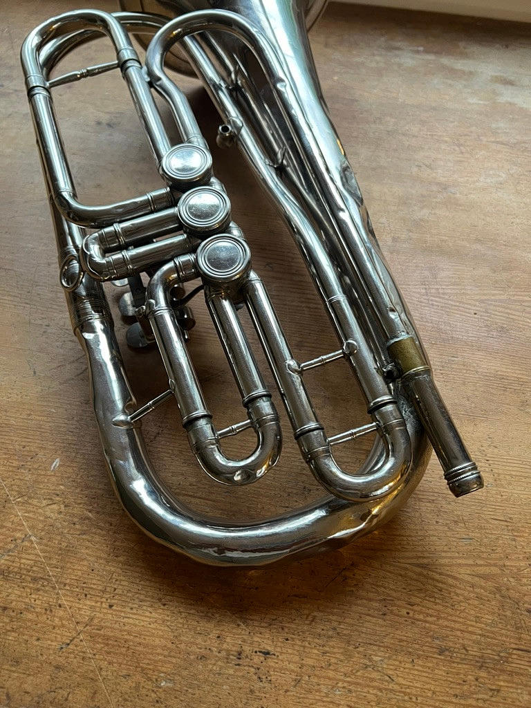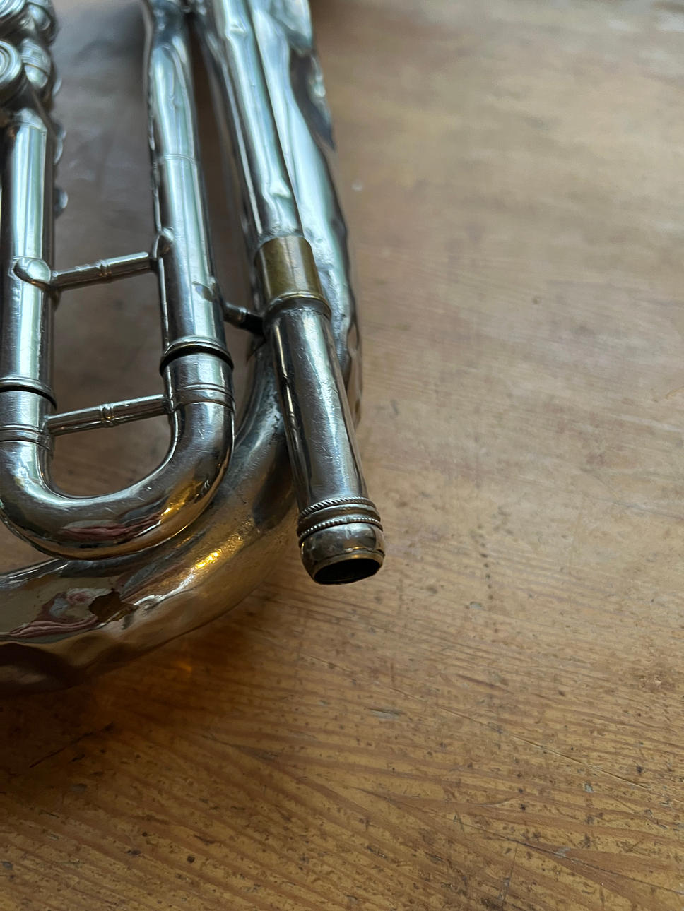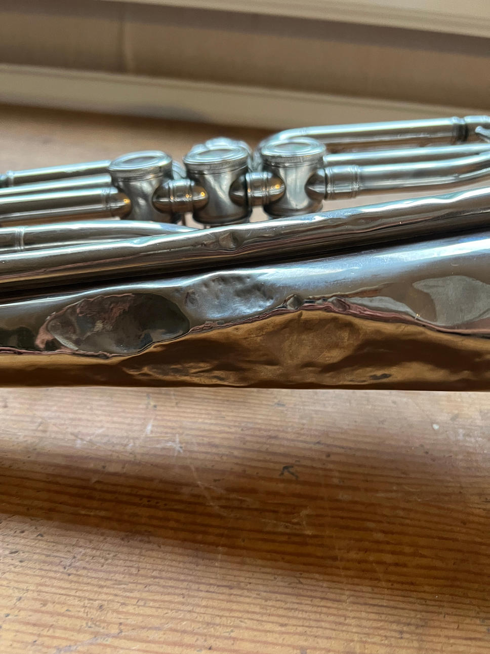 Boquilla severamente abollada, falta.