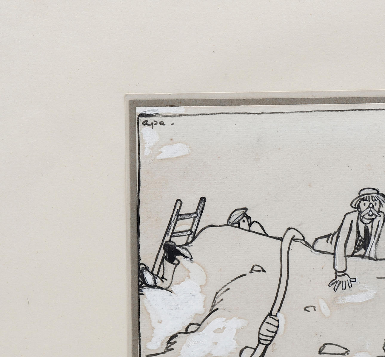 Dibujo a tinta y gouache sobre papel pegado a papel