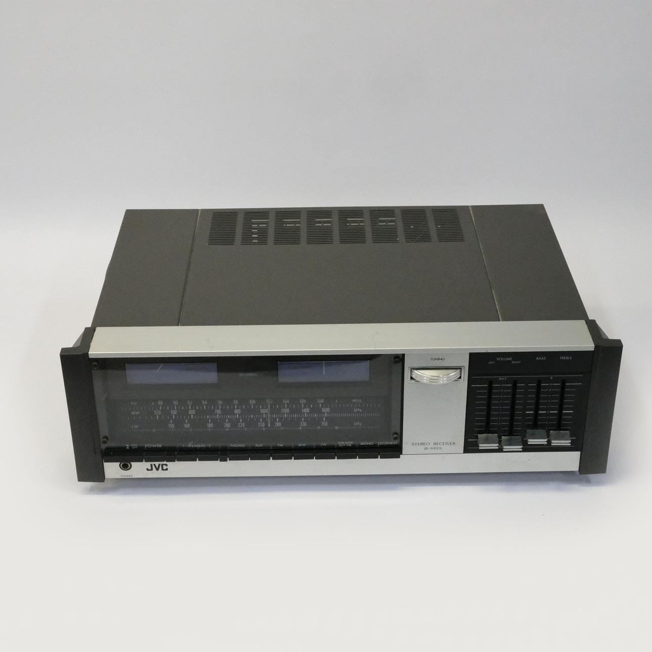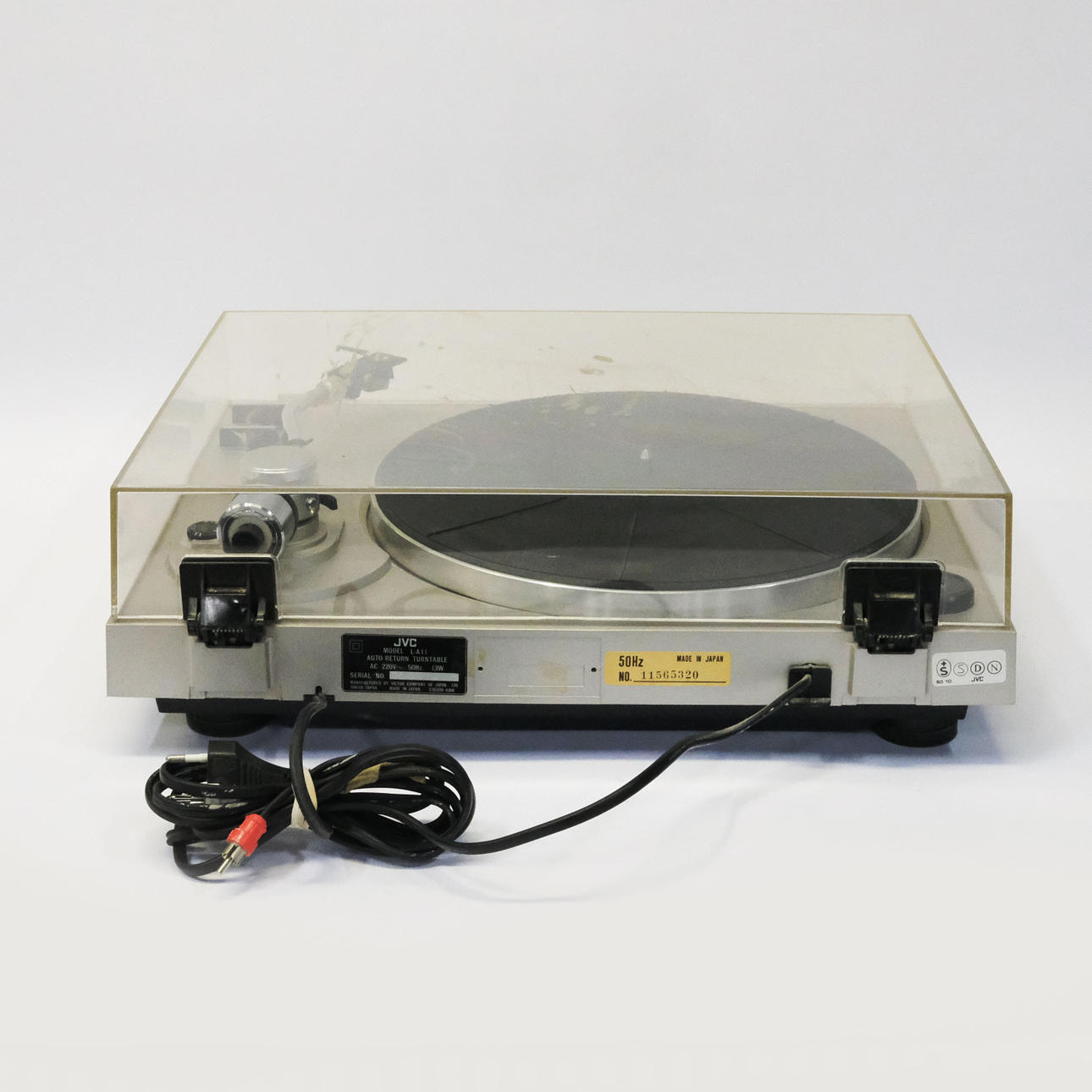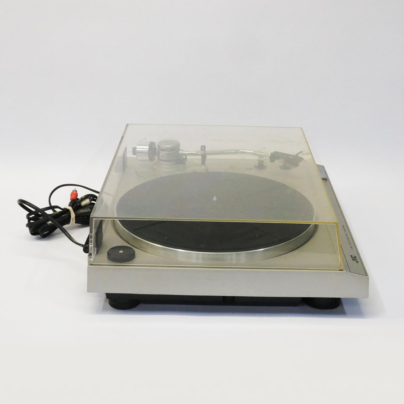 Tocadiscos JVC L-A11, largo 43 cm, alto 14 cm, ancho 37 cm y amplificador JVC JR-S100L, largo 50 cm, alto 16 cm, ancho 30 cm.