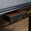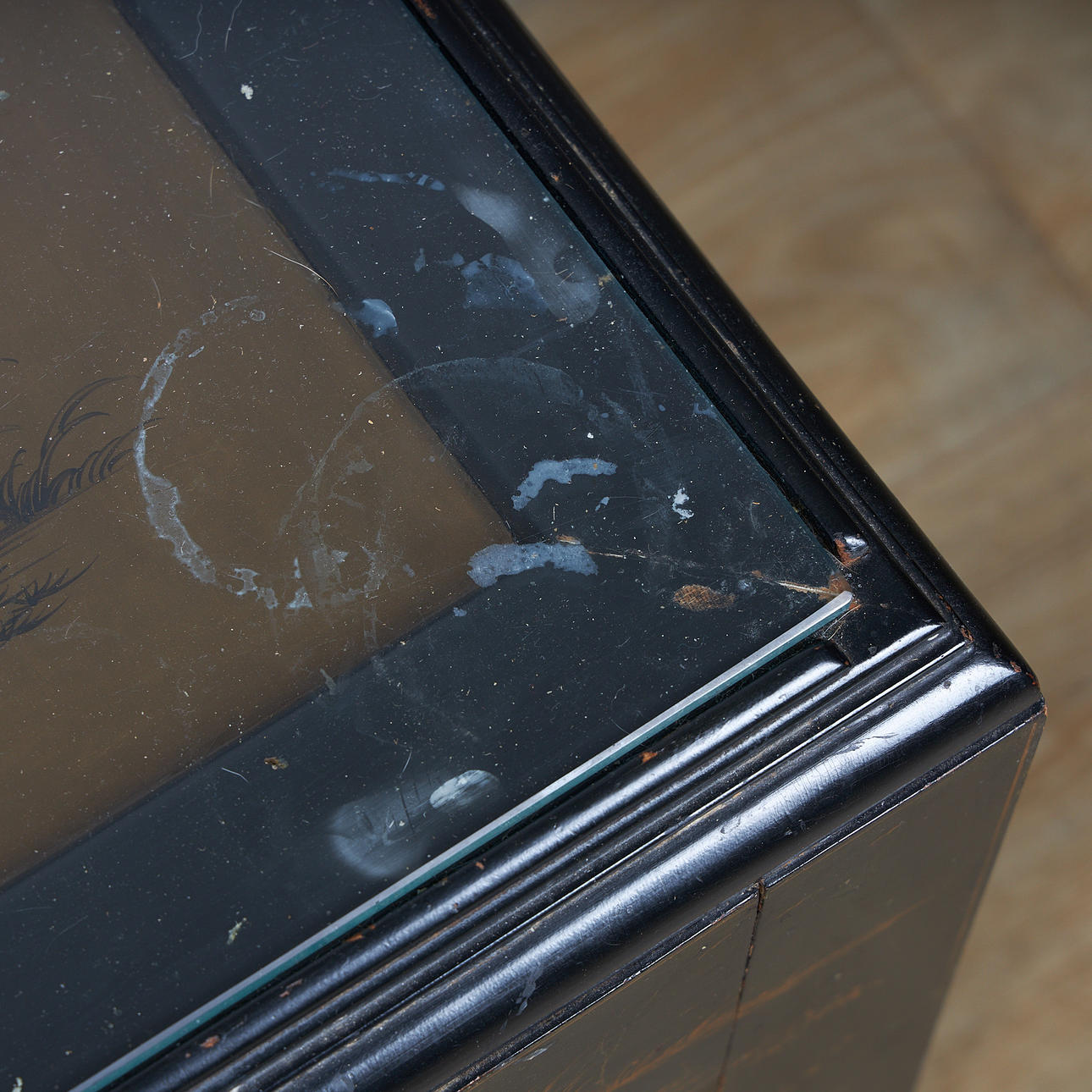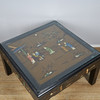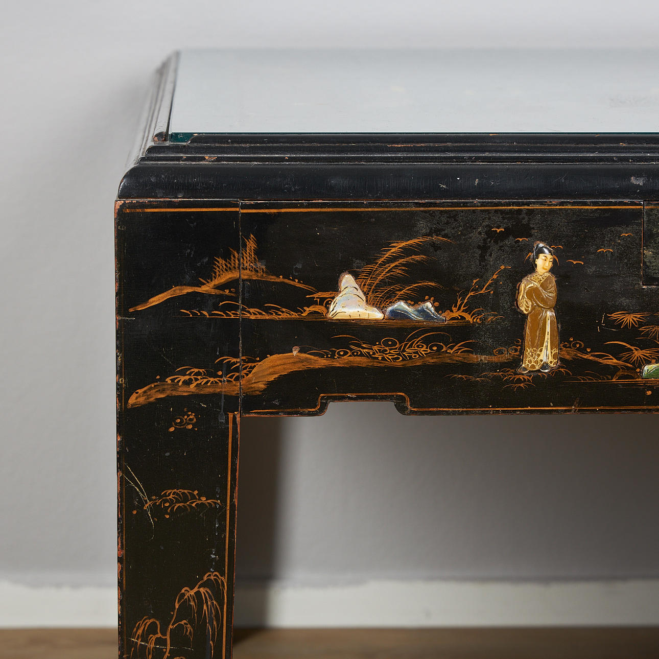 Lacado negro, decoración de figuras, tapa de cristal, altura aproximada 52, 81x81 cm.
