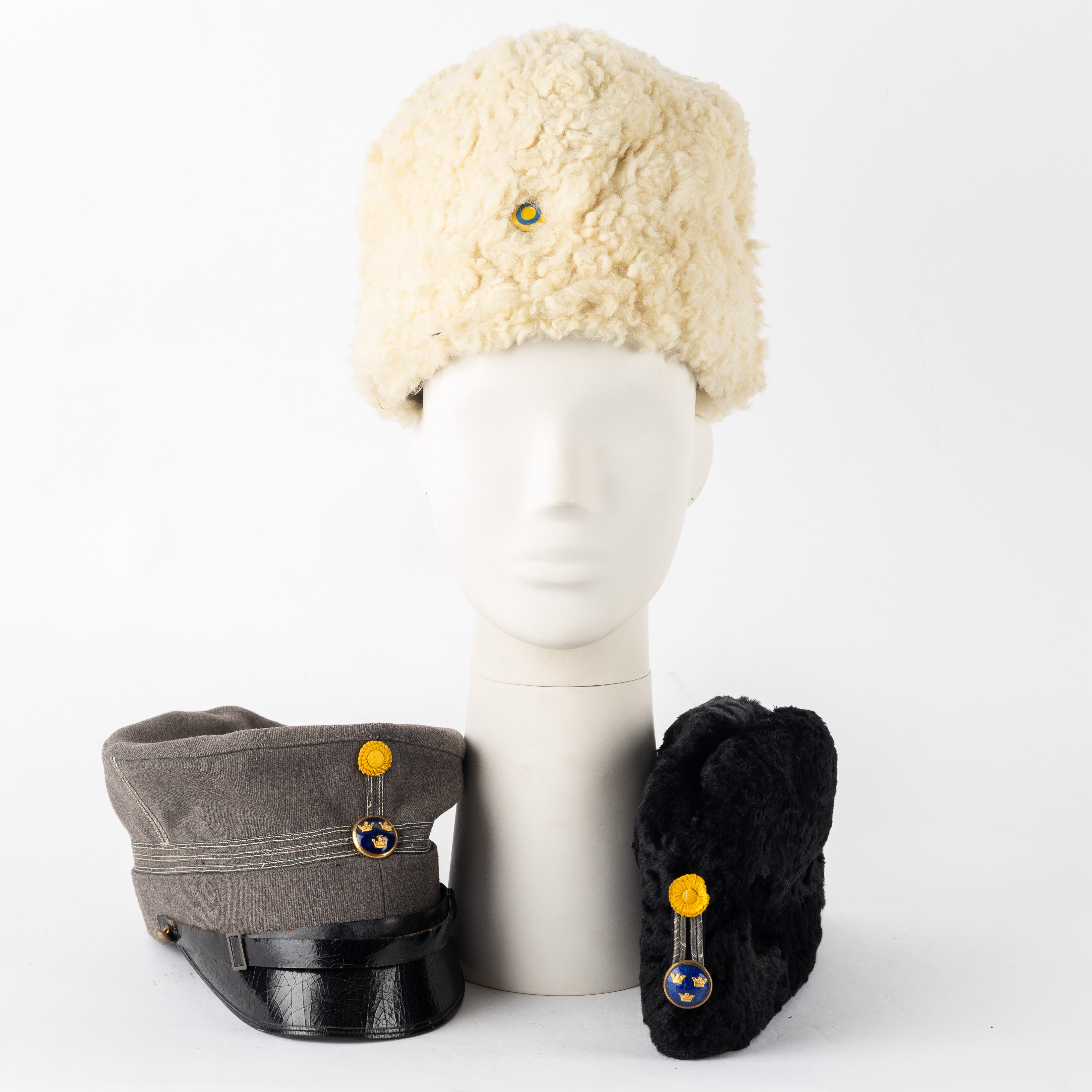 2982729. GORROS DE PIEL, 2 piezas Y GORRO DE PANTALLA, Ejército Sueco.