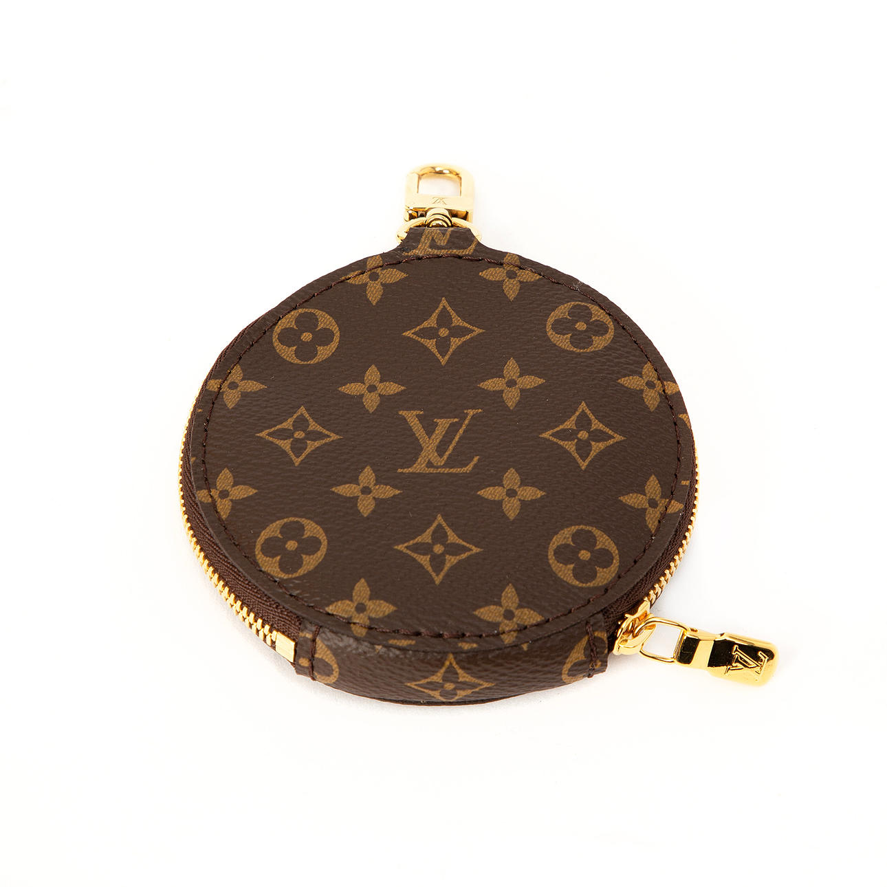 Loneta Monogram con detalles en metal amarillo.