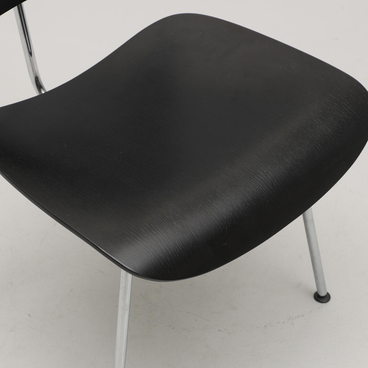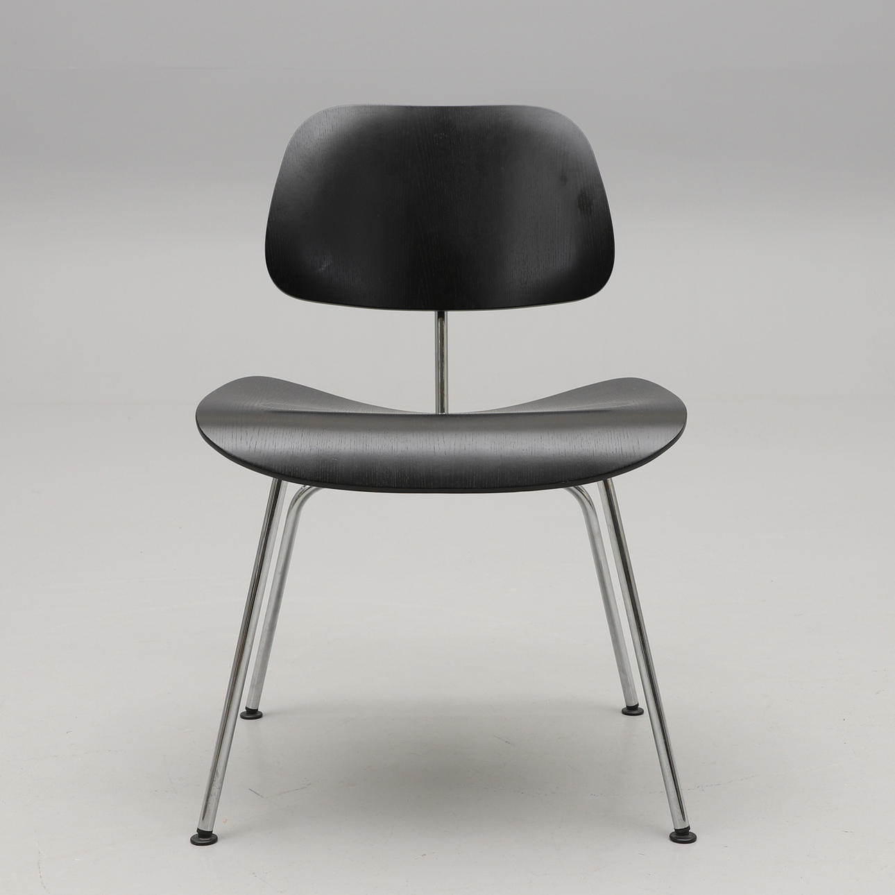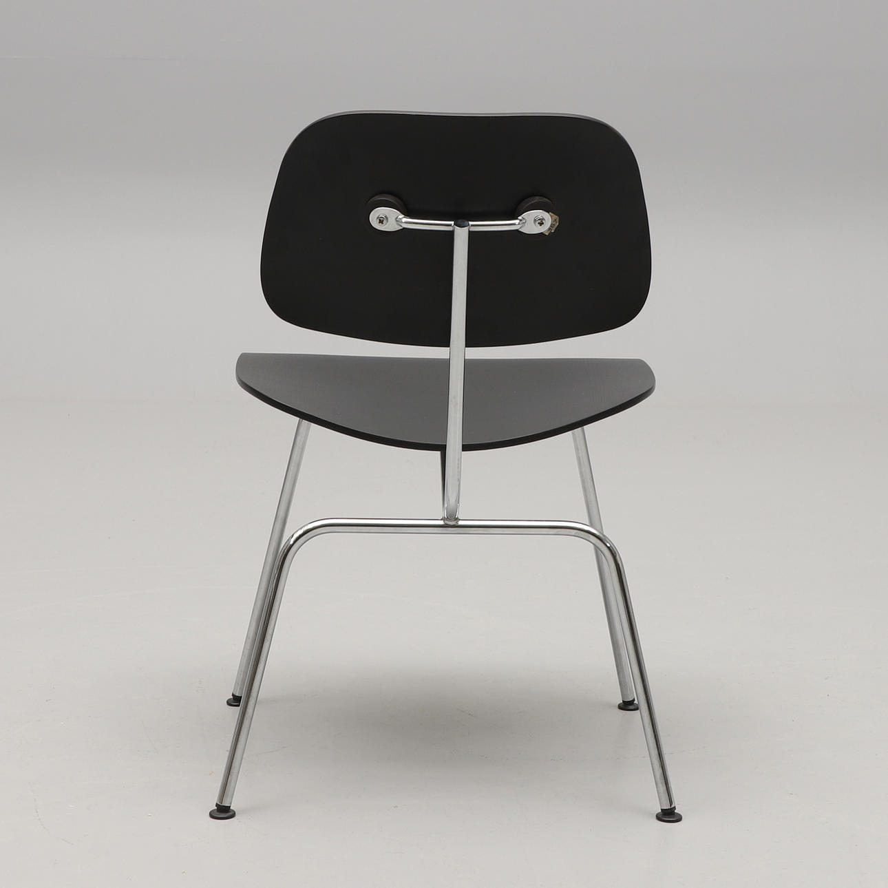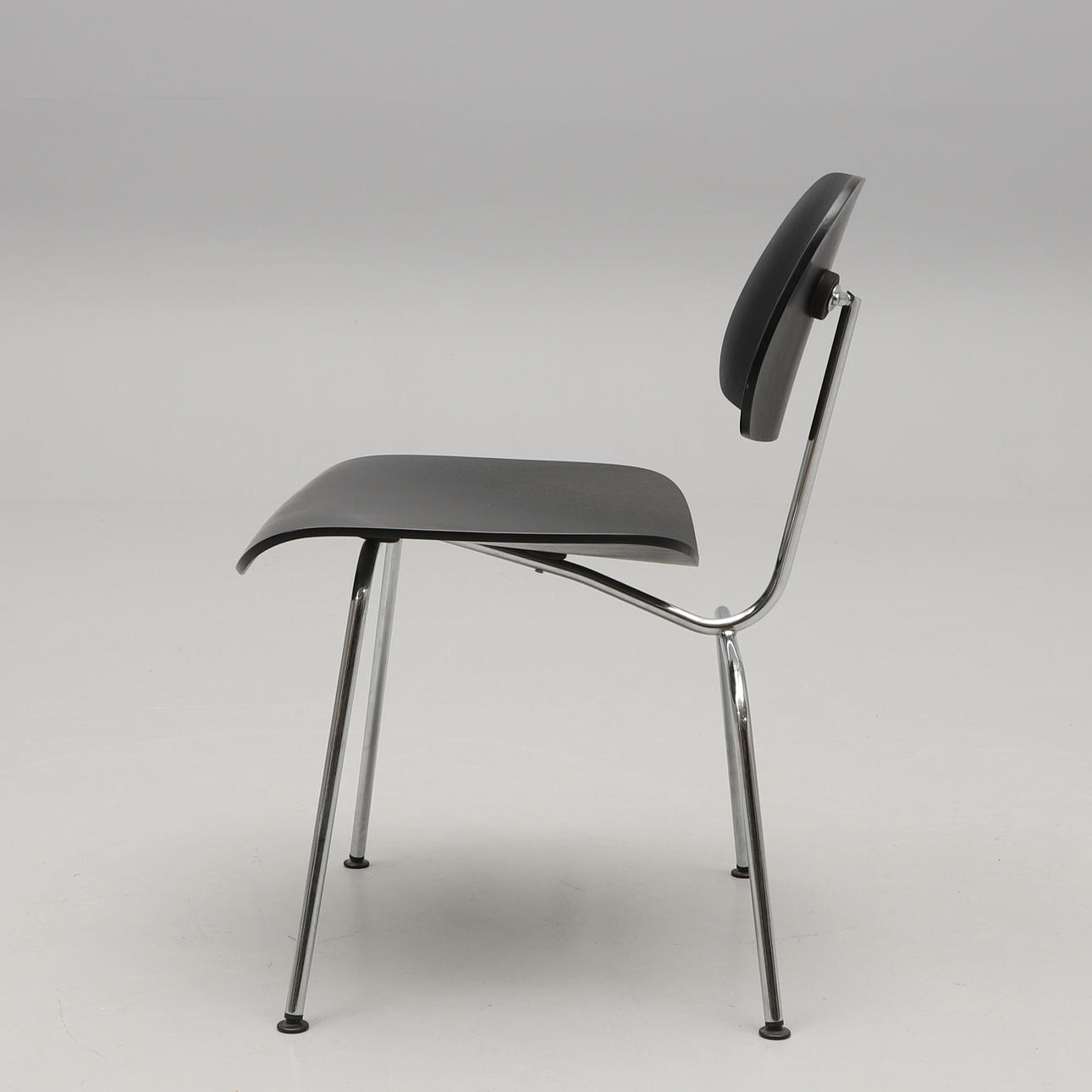 Silla Charles & Ray Eames "DCM", Dining Chair Metal, diseño 1946, estructura de tubo de acero cromado, respaldo y asiento de contrachapado moldeado.