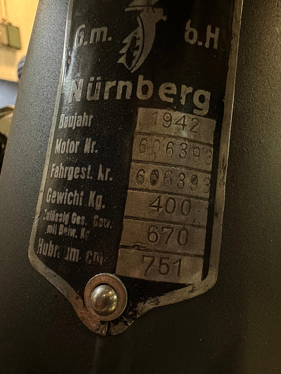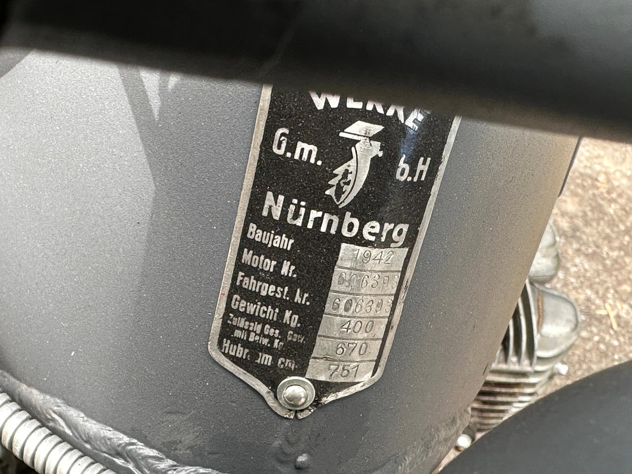 Año de modelo: 1942 Número de bastidor: 606393 Motor: Boxer de 2 cilindros, 750 cc Número de motor: 77268 No tiene título.
