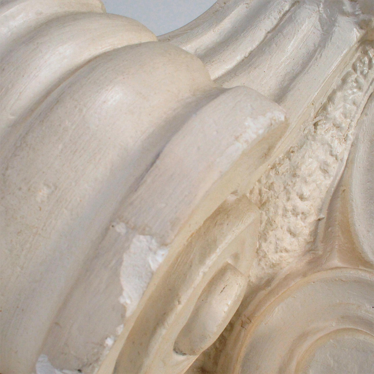 Mesa de comedor con columna corintia realizada en gres con tapa de cristal.