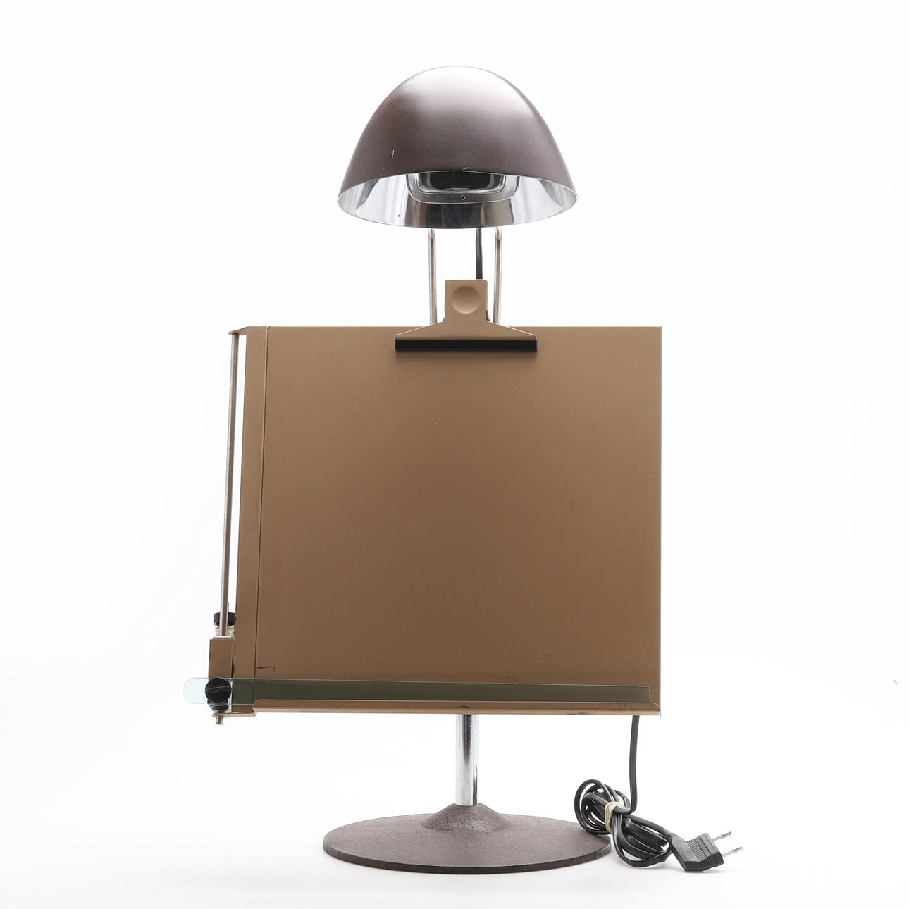Marco de metal. Tablero de dibujo ajustable y se puede subir y bajar. Altura aproximada 64 cm.