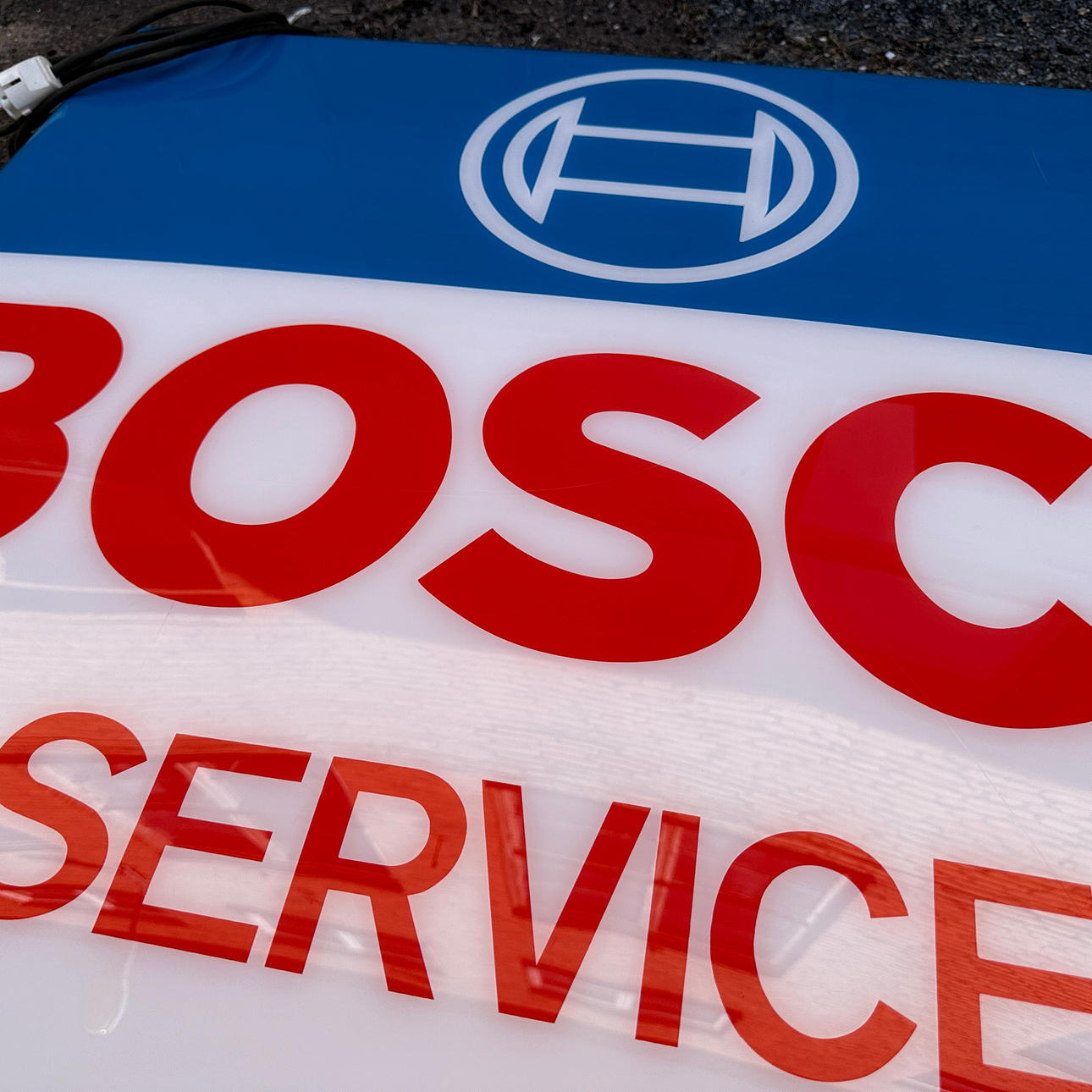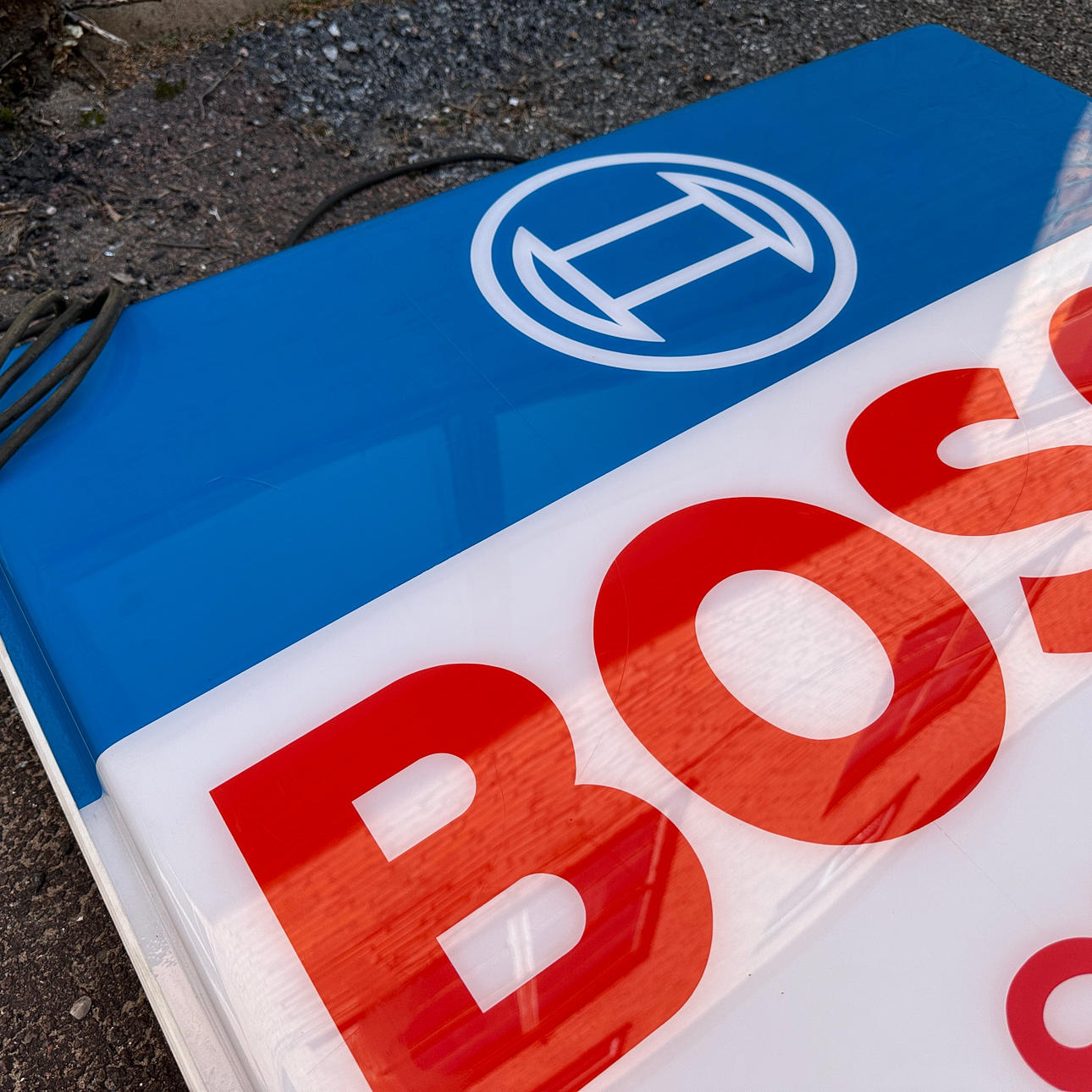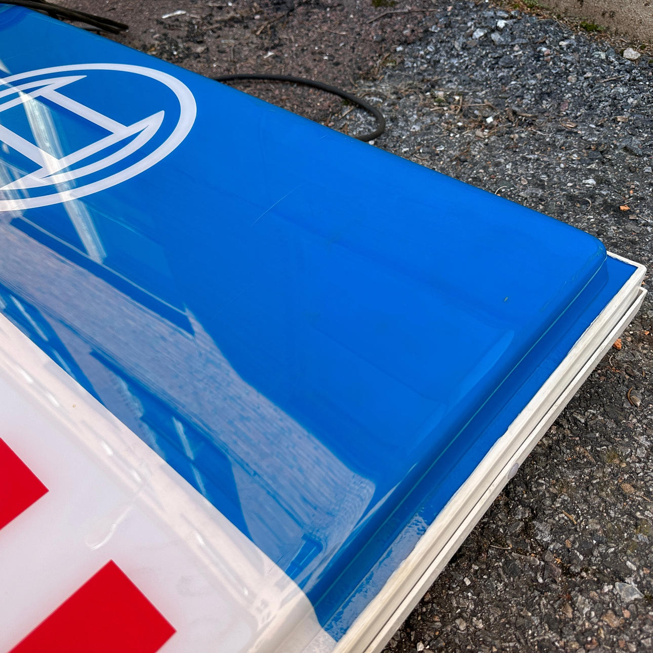 No hay daños visibles, pero hay rayones en el cartel de plástico.