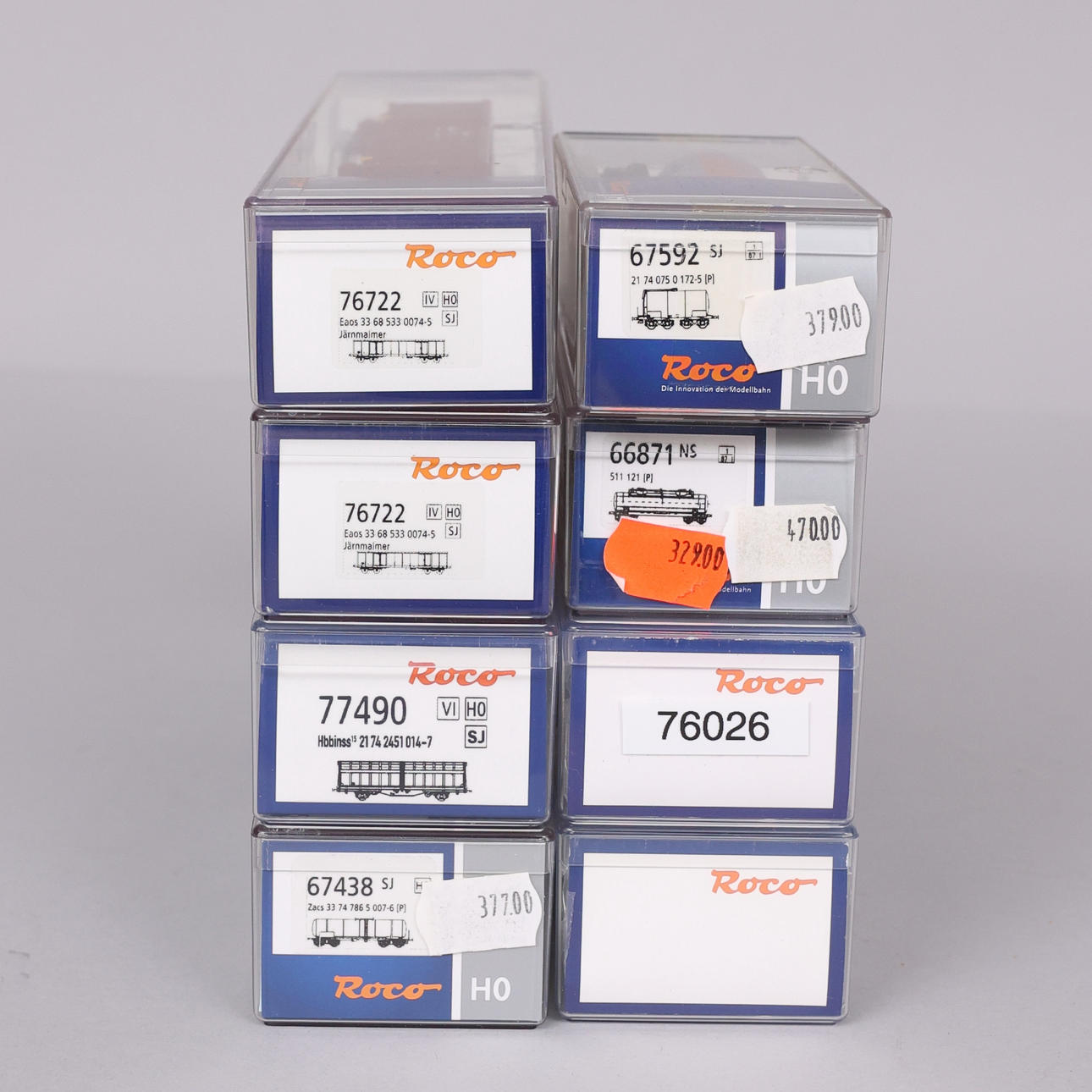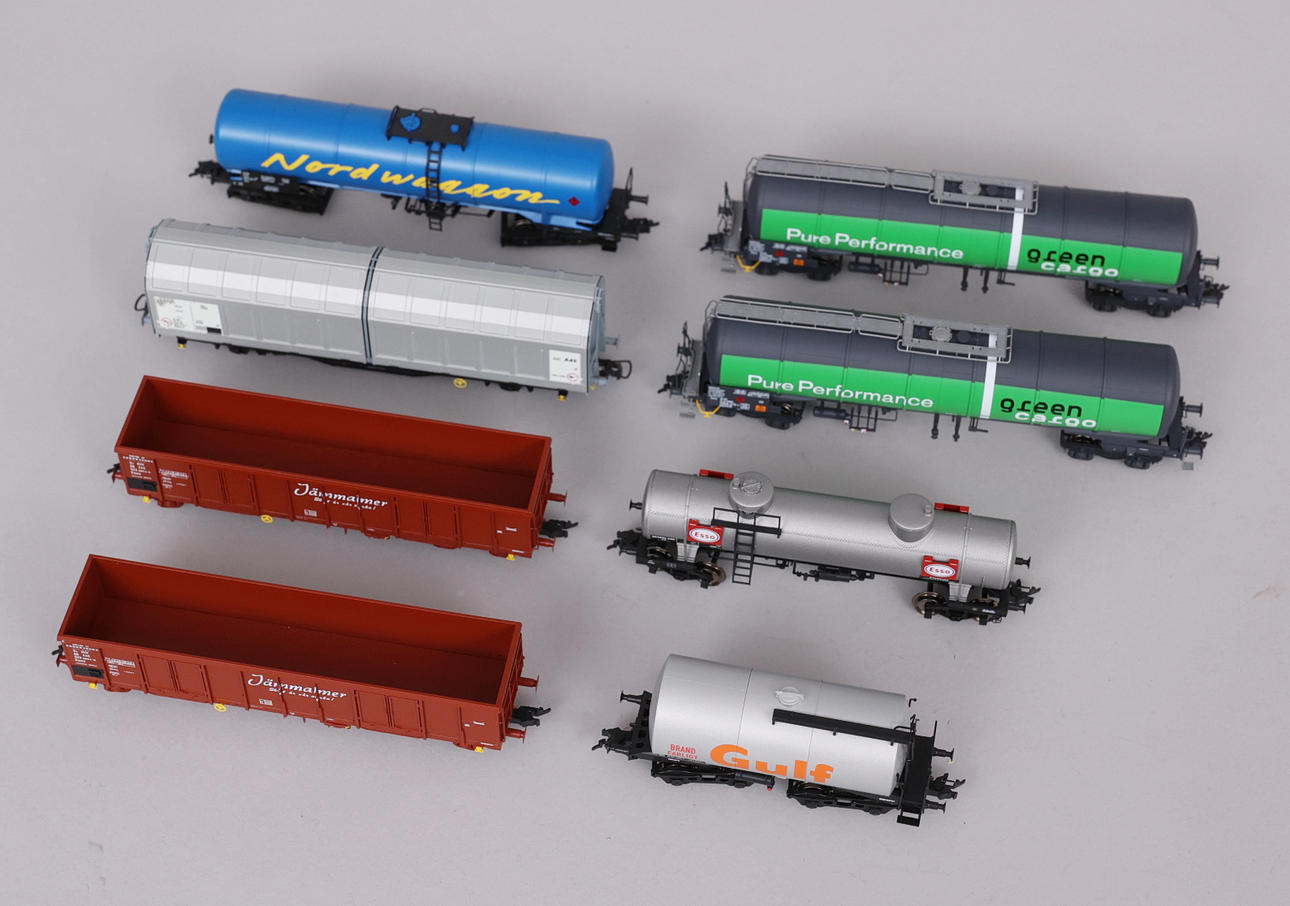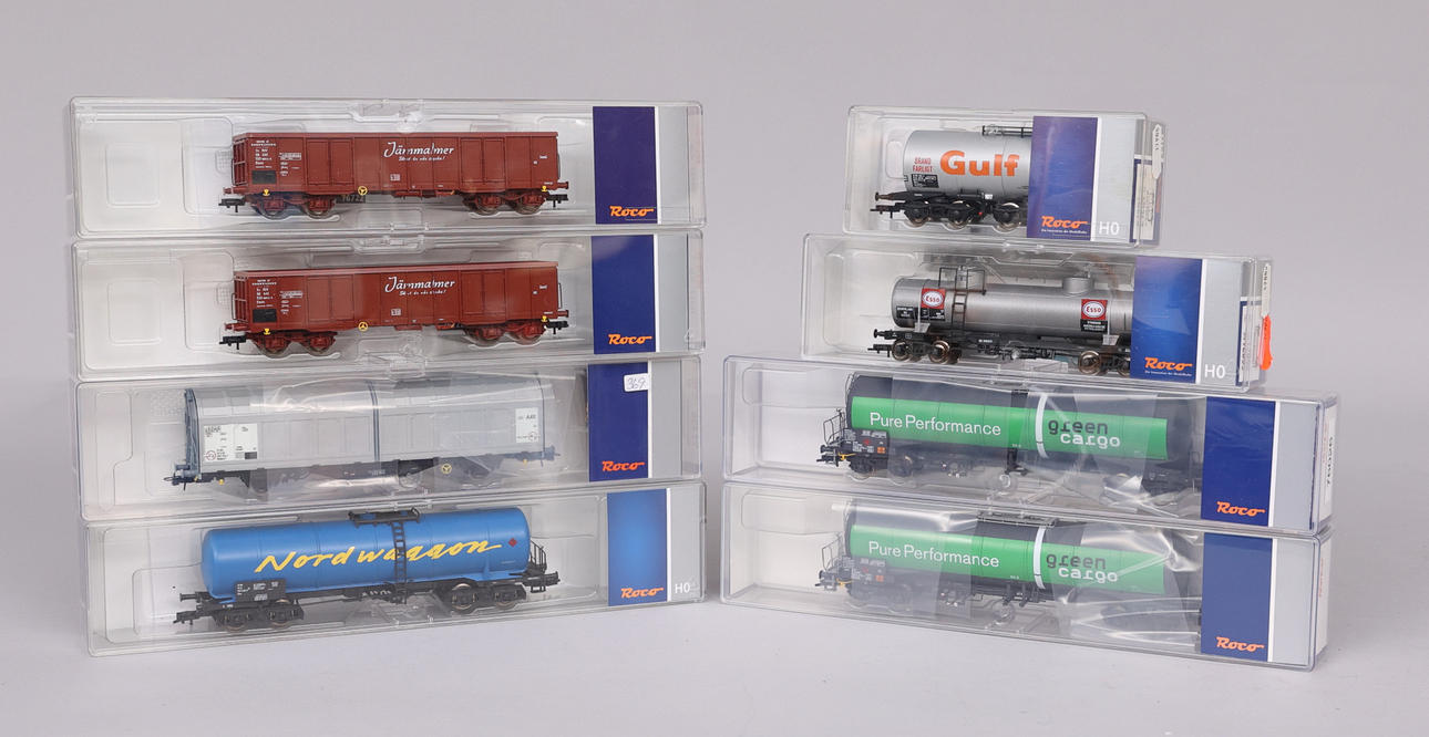Vagón cisterna NS, Roco 66871 Vagón cisterna SJ, Roco 67438 Vagón cisterna SJ, Roco 67592 Vagón de mercancías SJ, Roco 77490 2 vagones cisterna Green Cargo, Roco 76026 2 vagones de mercancías SJ, Roco 76722.
