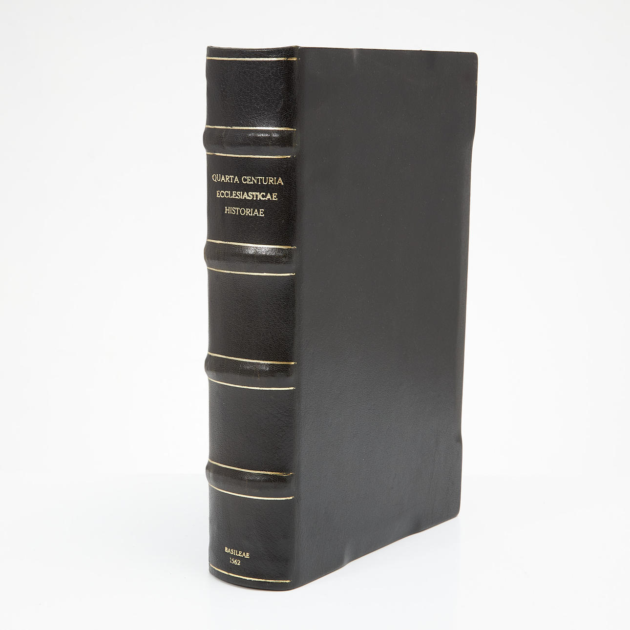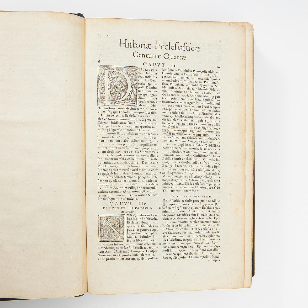 Segunda edición (primera 1560), más publicada. Cuarta parte de la monumental historia de la iglesia, que abarca 1300 años y conocida como los "Siglos de Magdeburgo", publicada entre 1559 y 1574. El texto fue escrito por un colectivo de eruditos de Magdeburgo, conocidos como los Centuradores de Magdeburgo, el autor/editor principal fue Matthias Flacius (1520-1575). La obra fue famosa por su método crítico pionero, y las historias de la iglesia posteriores se inspiraron en ella.