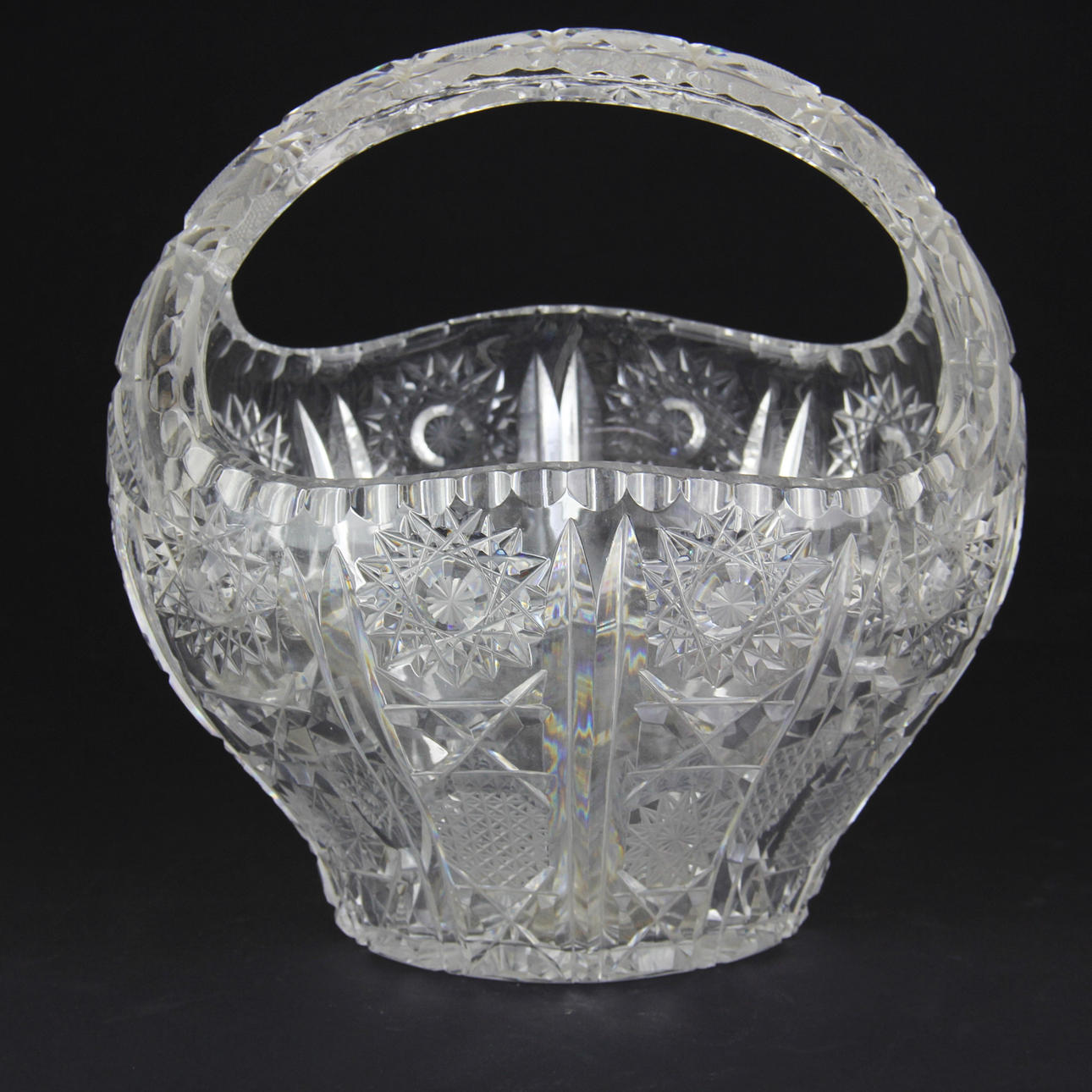 Cesta de cristal tallado, altura 24 cm.