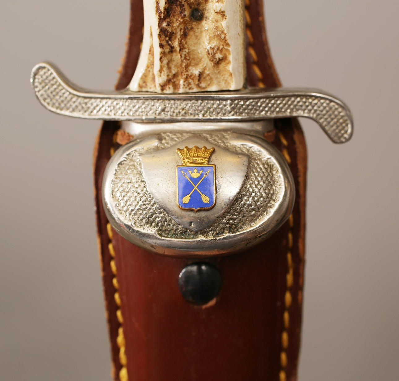 El escudo marcado con el escudo de armas regional de Dalarna Tina de acero ennegrecido Longitud 35 cm.