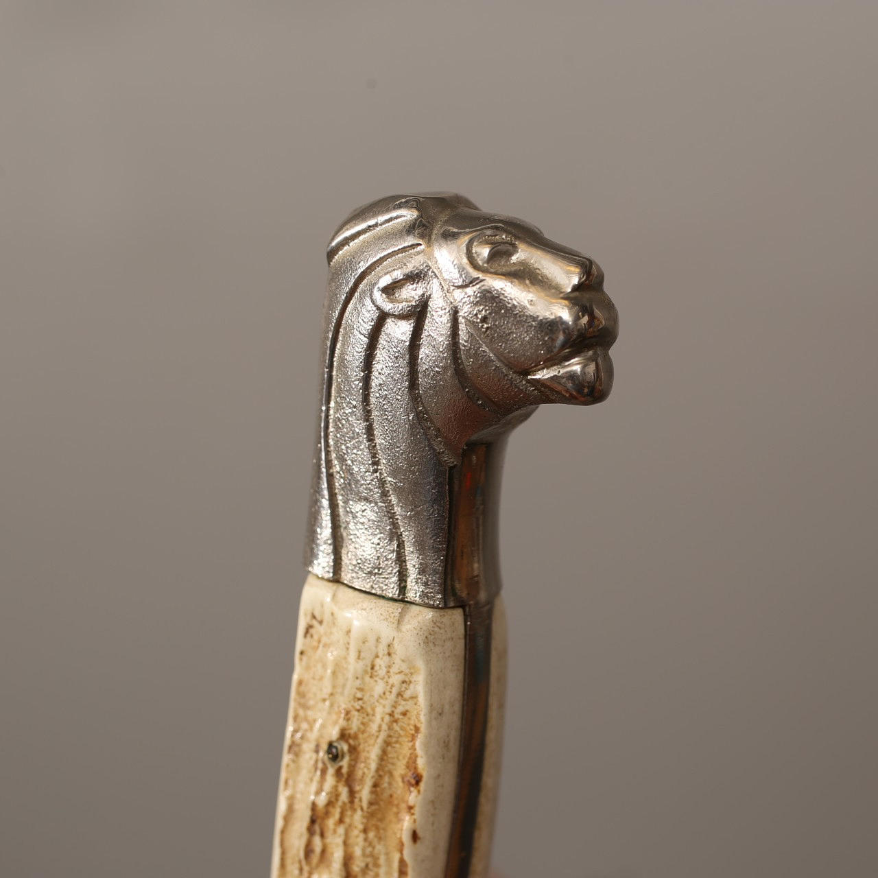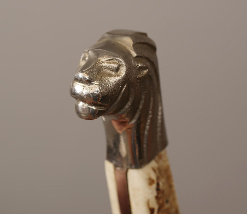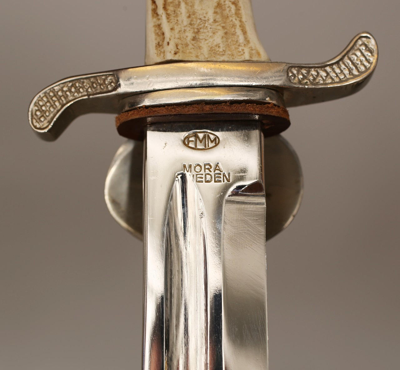 Bayoneta de permiso sueca clásica de FMMattsson. Platos rodantes de cabeza de león y cuerno estilizados.