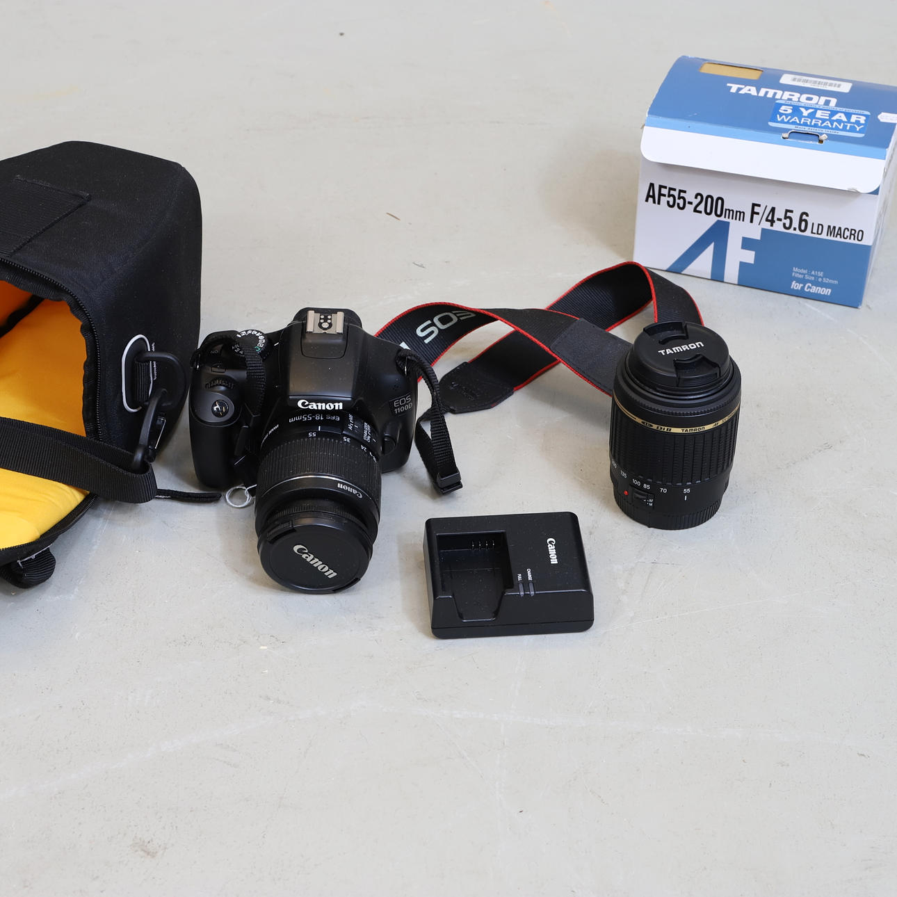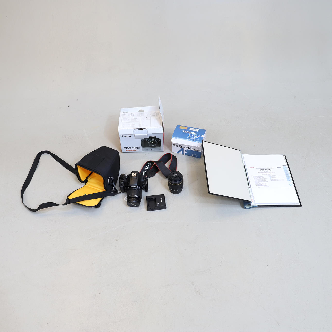 Cámara, dos lentes y cargador de batería. Con caja, bolso y accesorios originales.
