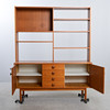 Parte superior con balda. Parte inferior con mueble con balda inferior y cajones. Longitud 140 cm. Profundidad 40 cm. Altura 171 cm.