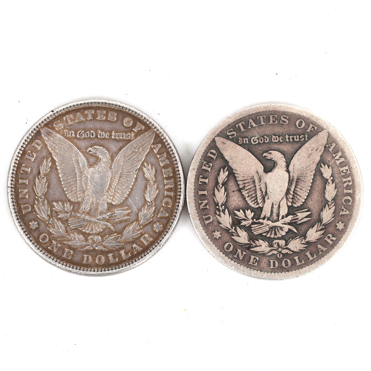 1886, diámetro 37,6 mm, peso 26,8 gramos. 1890, Nueva Orleans, diámetro 37,5 mm, peso 25,5 gramos.