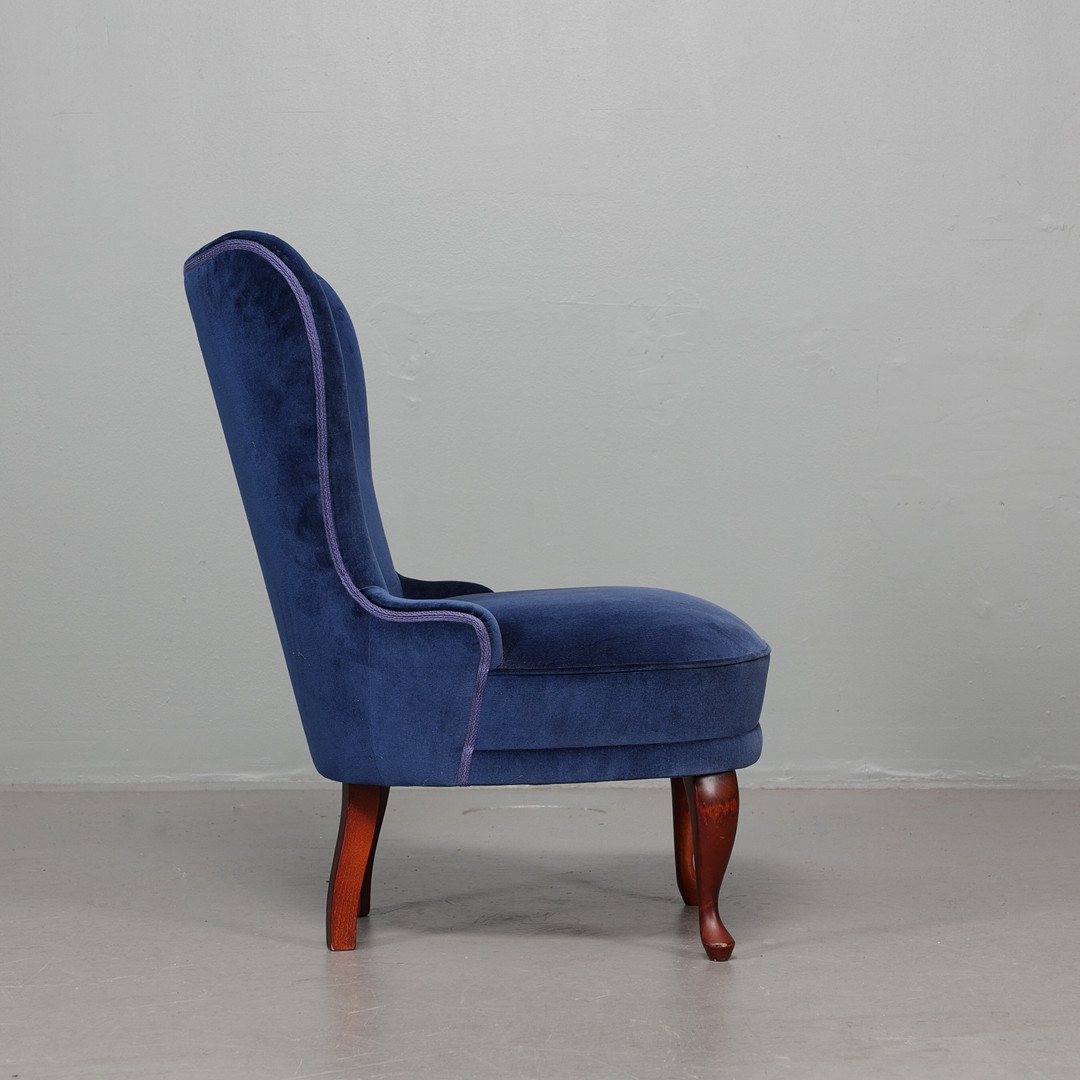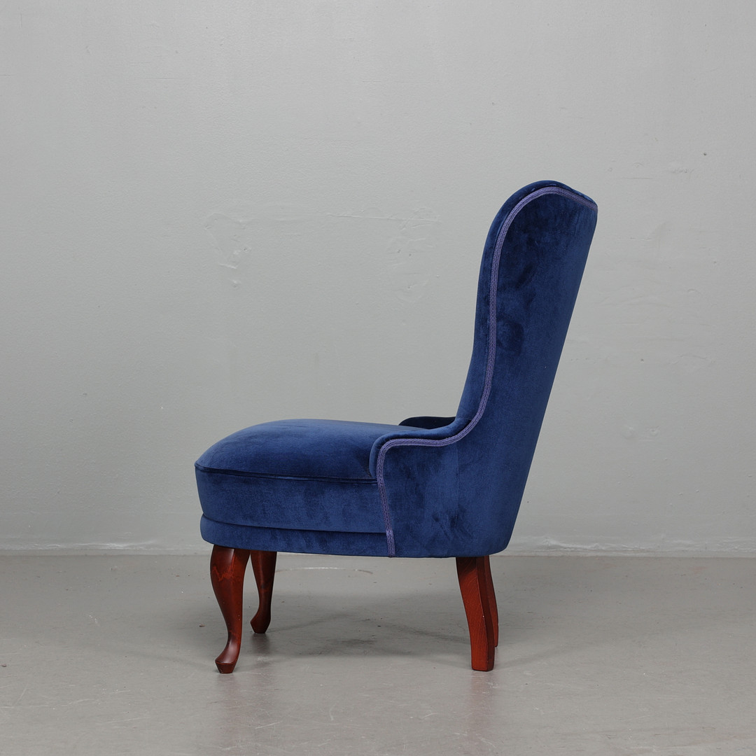 3046342. SILLÓN EMMA, tapizado azul, década de 1900.