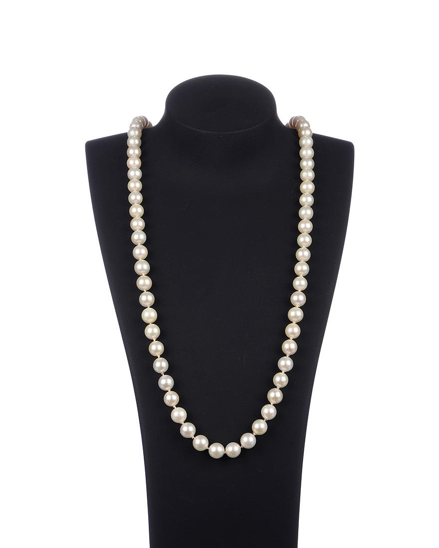 Collar de perlas, 88 perlas Akoya de aproximadamente 7,5 mm, cierre WG585, 8 zafiros, anudadas, peso total aprox. 60,6 g, longitud aprox. 78cm.